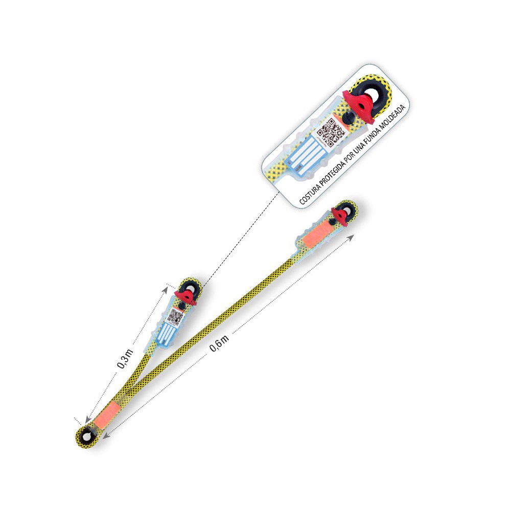 Elemento de amarre en V asimétrico de cuerda dinámica con terminales cosidos. Las prestaciones dinámicas de este elemento de amarre son superiores a las de un elemento de amarre estático tradicional.