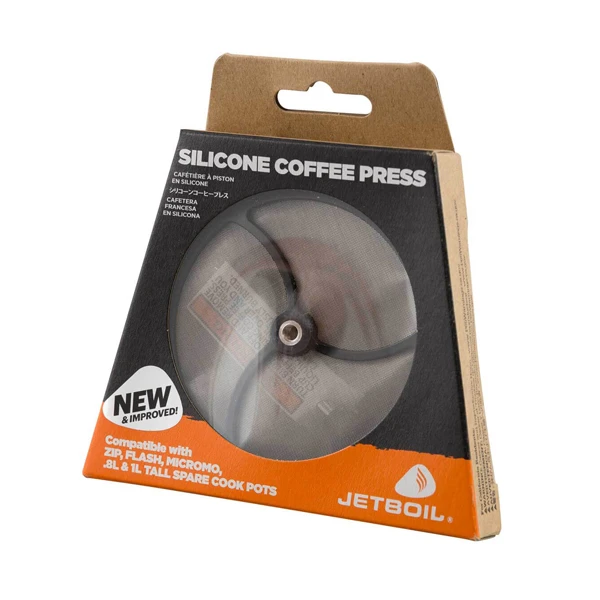 Filtro de café novedoso de la marca Jetboil modelo Silicone Coffee Press de tamaño regular.