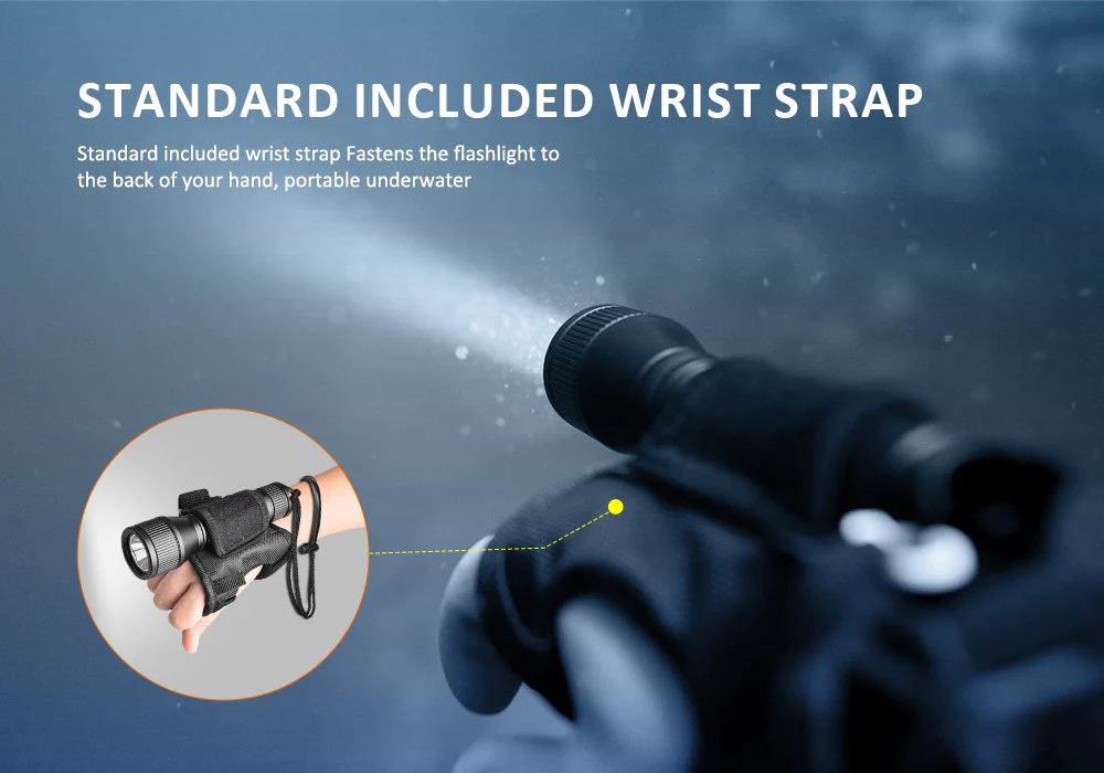 - EstandardientementeCorrea de muñeca incluida sujeta la linterna al dorso de su mano