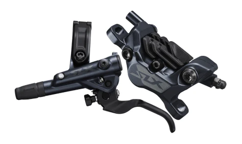 Ideal para MTB y eMTB, el kit de freno MTB Shimano SLX M7100 de 4 pistones ofrece un 10% más de rigidez, incluso a altas temperaturas, y potencia que la versión M7000. El ciclista frena así con eficacia y confianza; de esta forma los descensos sean más controlados y seguros.