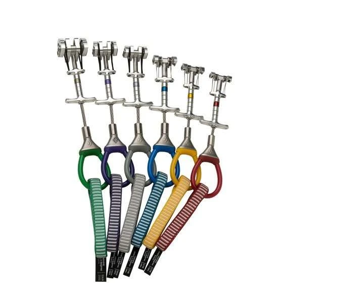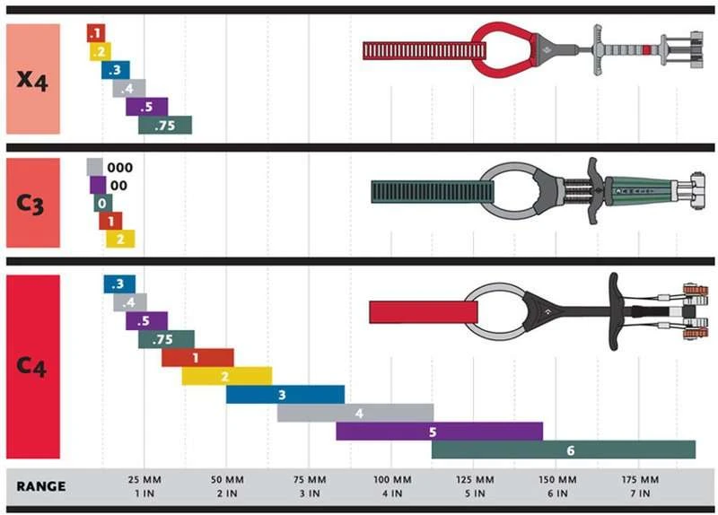 Friend Camalot X4 con 4 levas, vástago flexible y cabeza más estrecha para encajar mejor en fisuras cortas y en pequeños agujeros.