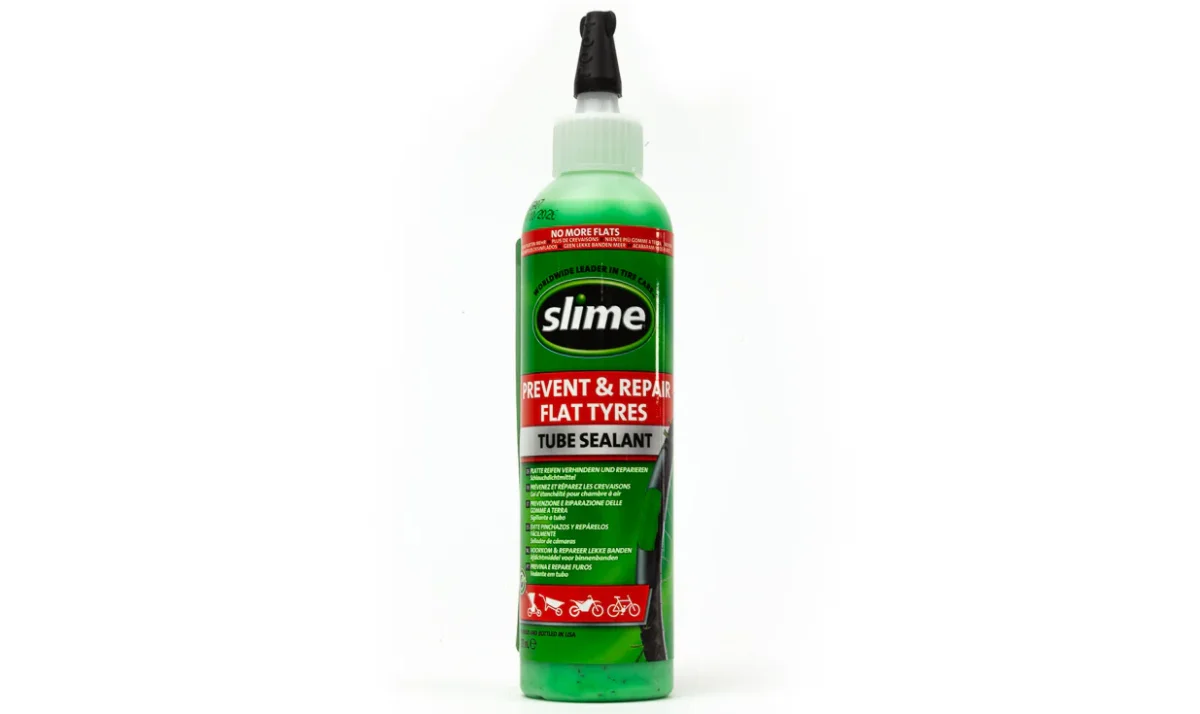 El sellador Slime para cámaras limita el riego de pinchar, evita y repara los pinchazos causados por objetos punzantes, los agujeros se tapan gracias a la tecnología Fibro-Seal a base de fibras de vidrio y de polímeros que se solidifican al contacto con el aire.