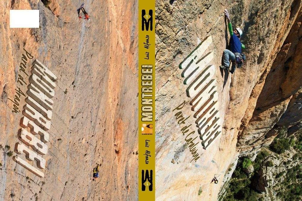 Guía de escalada de Montrebei que empieza por los dos lados, uno la pared de Aragón y otro la pared de Cataluña y las dos partes se encuentran en la mitad.