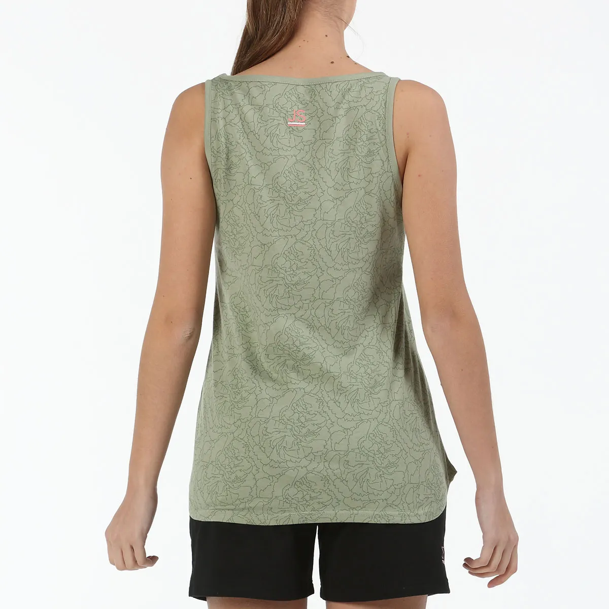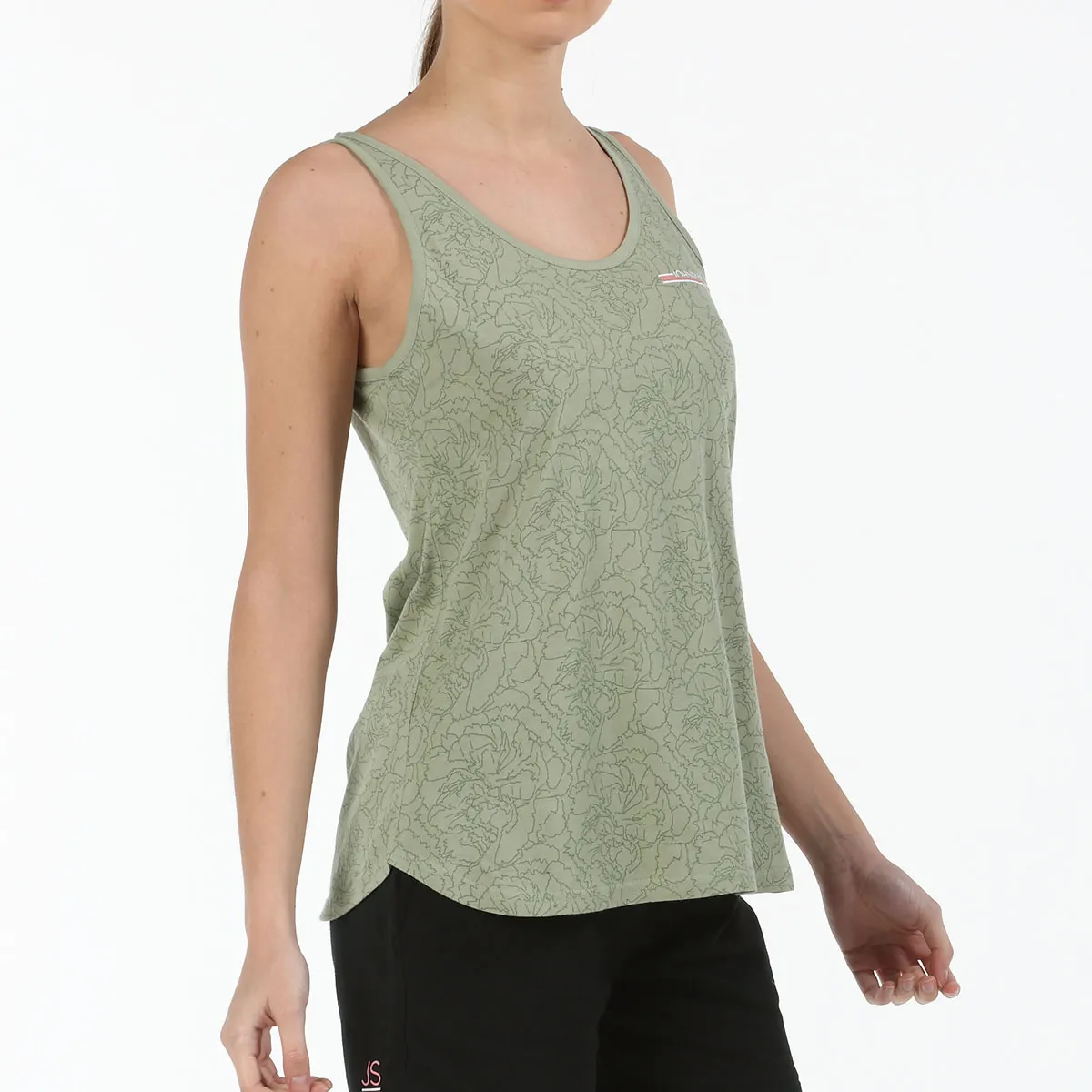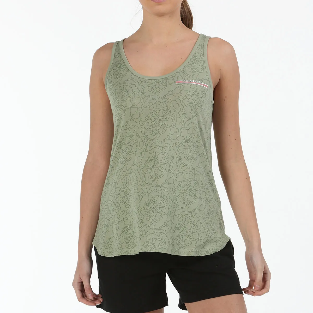 Camiseta de mujer John Smith Fianery de tirantes con un estampado en verde oliva. Está fabricada en tejido jersey 100% algodón. Perfecta para tus entrenamientos, o para salir a caminar en los días más calurosos.