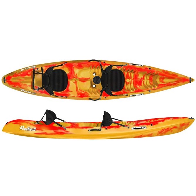 Con unas caracteristicas muy parecidas a las de su hermano menor el PARADISE I, este kayak biplaza que lleva la opción del tercer asiento para poder poner un tercer pasajero o para utilizarlo en solitario. super Estable en el agua, su diseño de casco hace que sea muy fácil de mantener la dirección una vez estás navegando. Un kayak recomendable para aquellos que buscan un autovaciable doble compacto. Incluye 2 riñoneras sot surf de luxe, y un compartimento estanco central con bolsa. Fabricado en polietileno EXL.