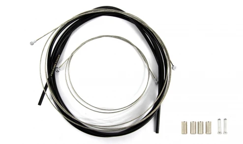 Kit de cables para frenos, compatible con todos los sistemas de frenos de carretera y MTB, salvo Campagnolo. Los cables en acero inox tienen dos tipos de puntas, una en cada extremidad.