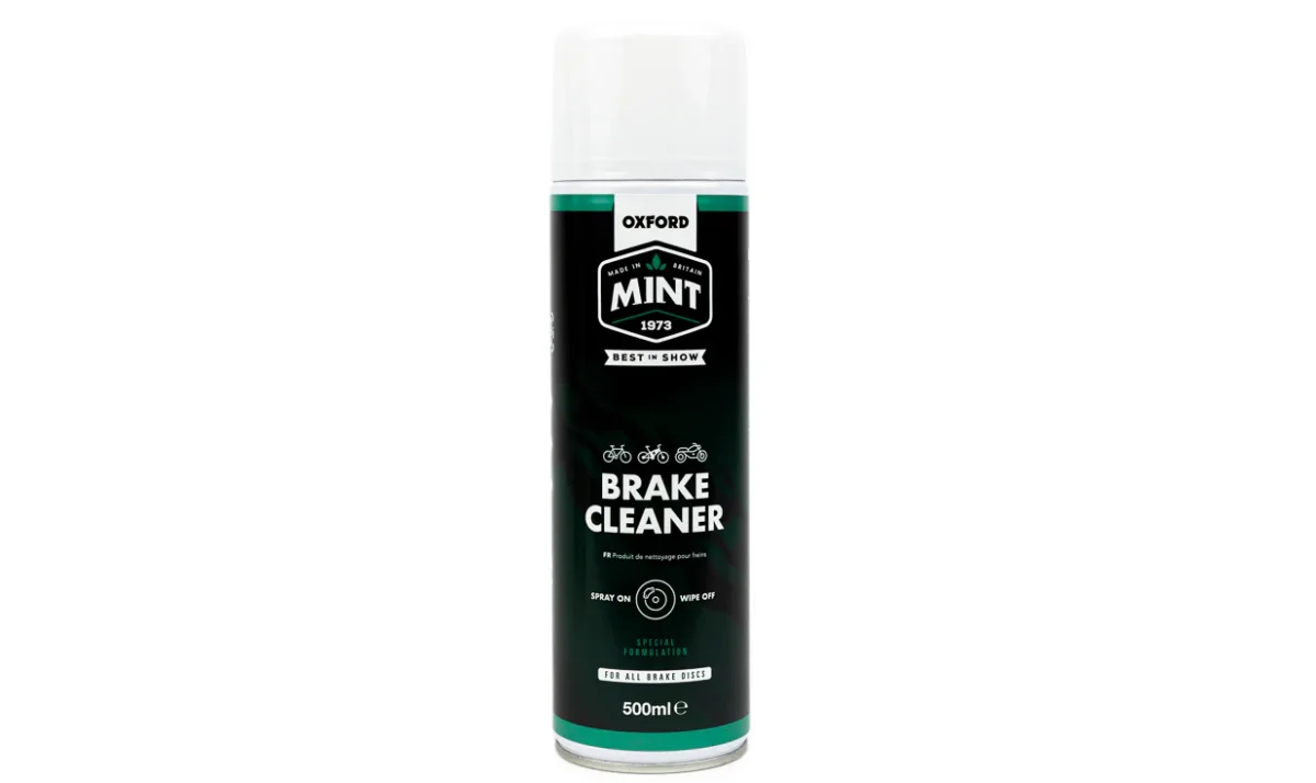 La marca inglesa Oxford ofrece, en su gama de mantenimiento de bicicletas Mint, el limpiador de frenos de disco Brake Cleaner. Elimina eficazmente los residuos de líquido de frenos y el polvo o la suciedad. ¡Ideal para tener siempre los frenos en perfecto funcionamiento! Diseñado para frenos de disco de bicicletas, Brake Cleaner Mint también se puede aplicar a piñones y cadenas.