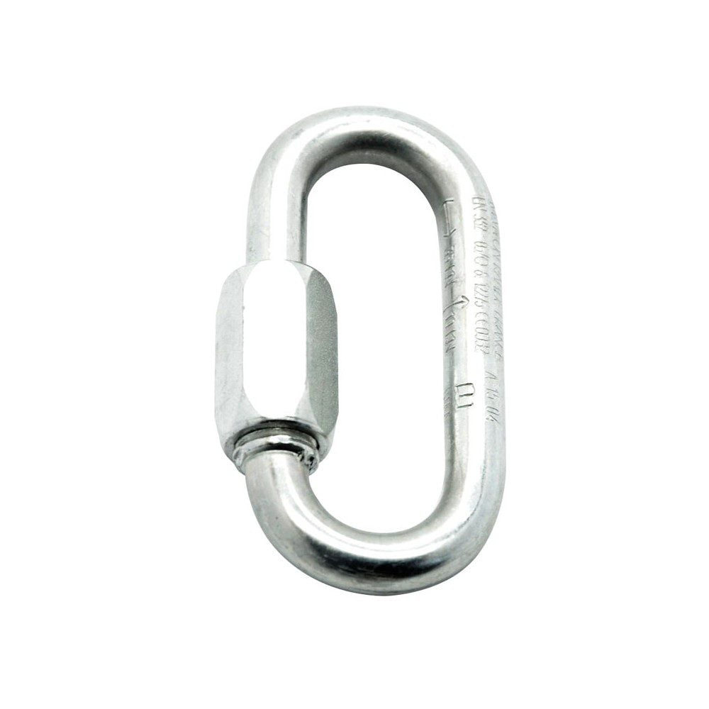 Maillón ovalado de acero galvanizado. Diámetro: 12 mm. Medidas: 10 cms. x 4 cms. Apertura: 15 mm. Carga de trabajo: 1500.