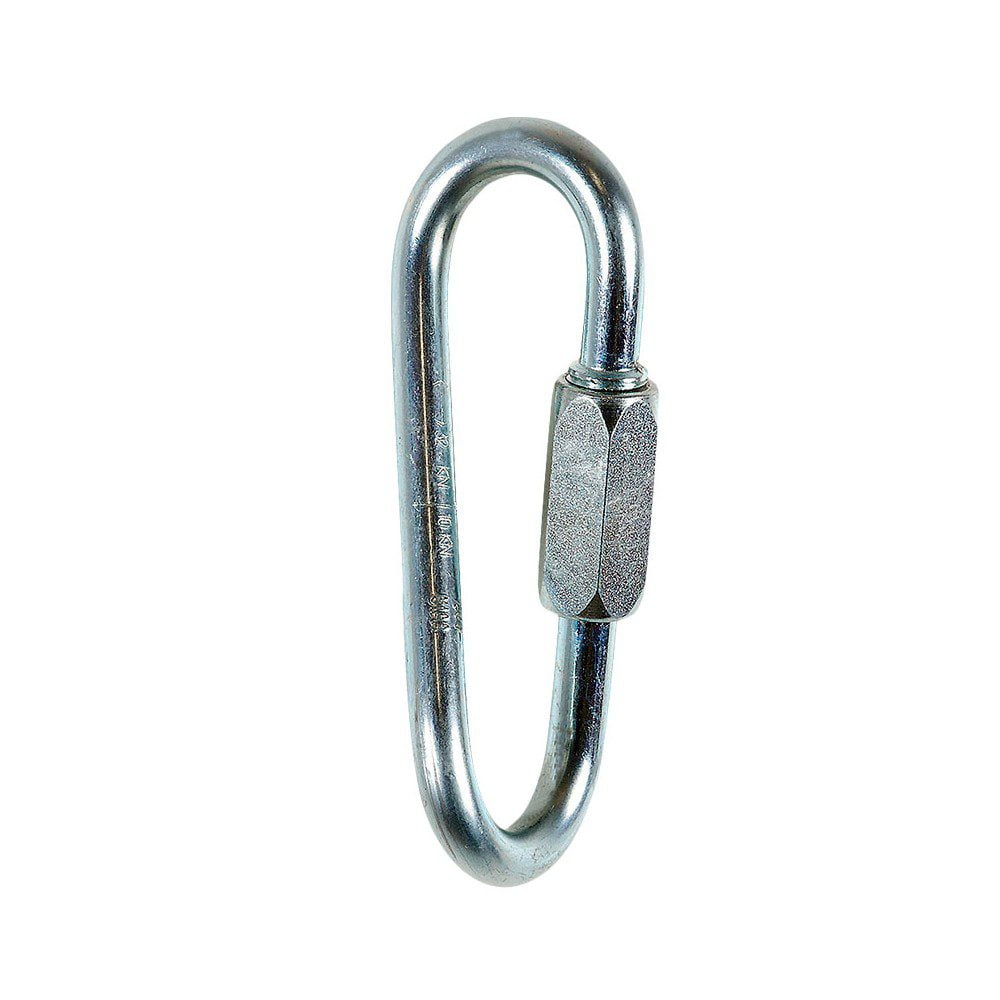 Maillón rápido de acero galvanizado de forma ovalada y torcido por 90°, Ø 8 mm, extremadamente resistente y diseñado para soportar altas cargas en todos los ejes.