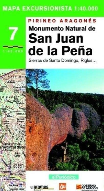 Este mapa muestra las numerosas posibilidades de actividades en la naturaleza en el entorno del monasterio románico de San Juan de la Peña, que incluye destacados parajes como peña Oroel, los mallos de Riglos o la sierra de Santo Domingo.
