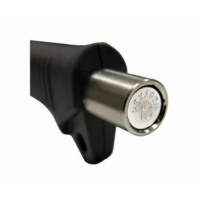 - En la parte de abajo del mango incorpora una llave tubo hexagonal M13 para colocar o retirar tornillos de 8 mm.