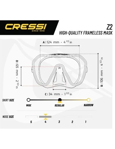 La máscara de buceo Cressi Z2 se fabrica mediante un avanzado proceso de producción de moldeado para conseguir una estructura sin marco de última generación.