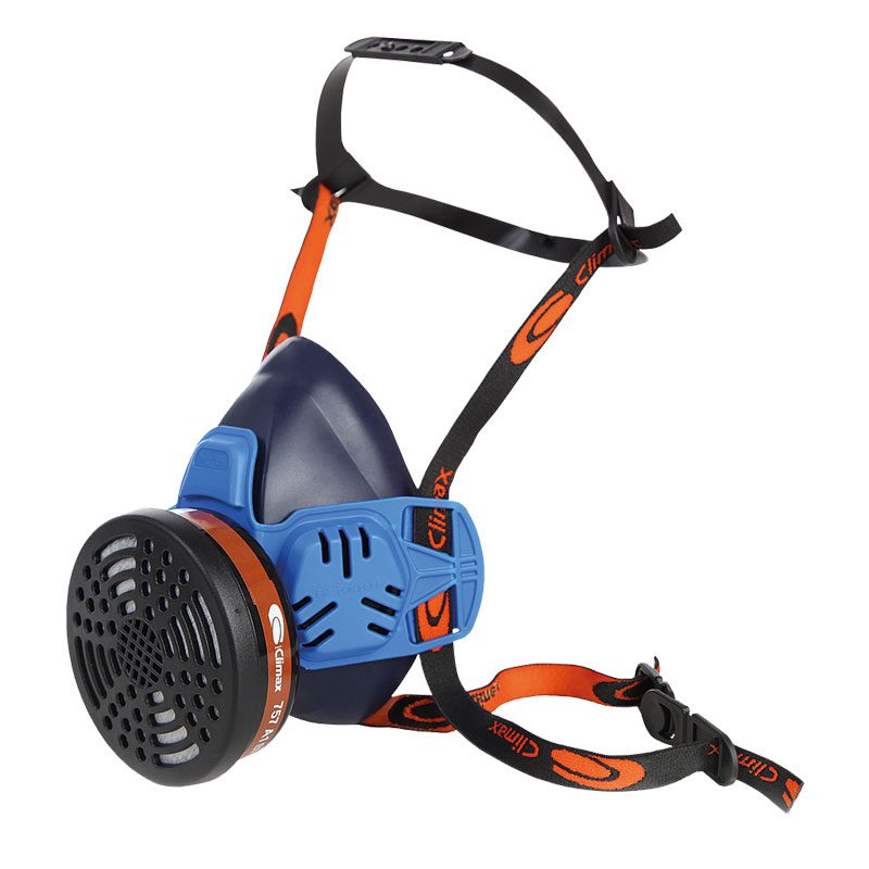 La mascarilla 762-S está fabricada en silicona. La conexión del filtro a la mascarilla se realiza mediante un sistema de bayoneta. Arnés de sujeción y banda de nuca ajustable. Equipada con un filtro central y dos válvulas de exhalación lateral. Compatible con filtros CLIMAX 757 para gases, vapores o partículas.