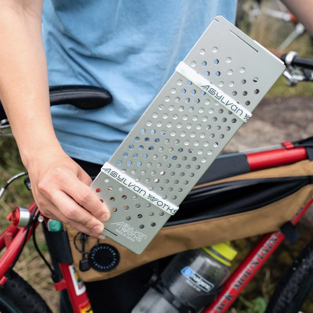 La mesa Solow de Sylvan Works es ligera, compacta y fácil de almacenar y transportar, por lo que es ideal para acampar en bicicleta, ir de excursión, o incluso simplemente para un picnic o un servicio de café / té al aire libre en el parque.