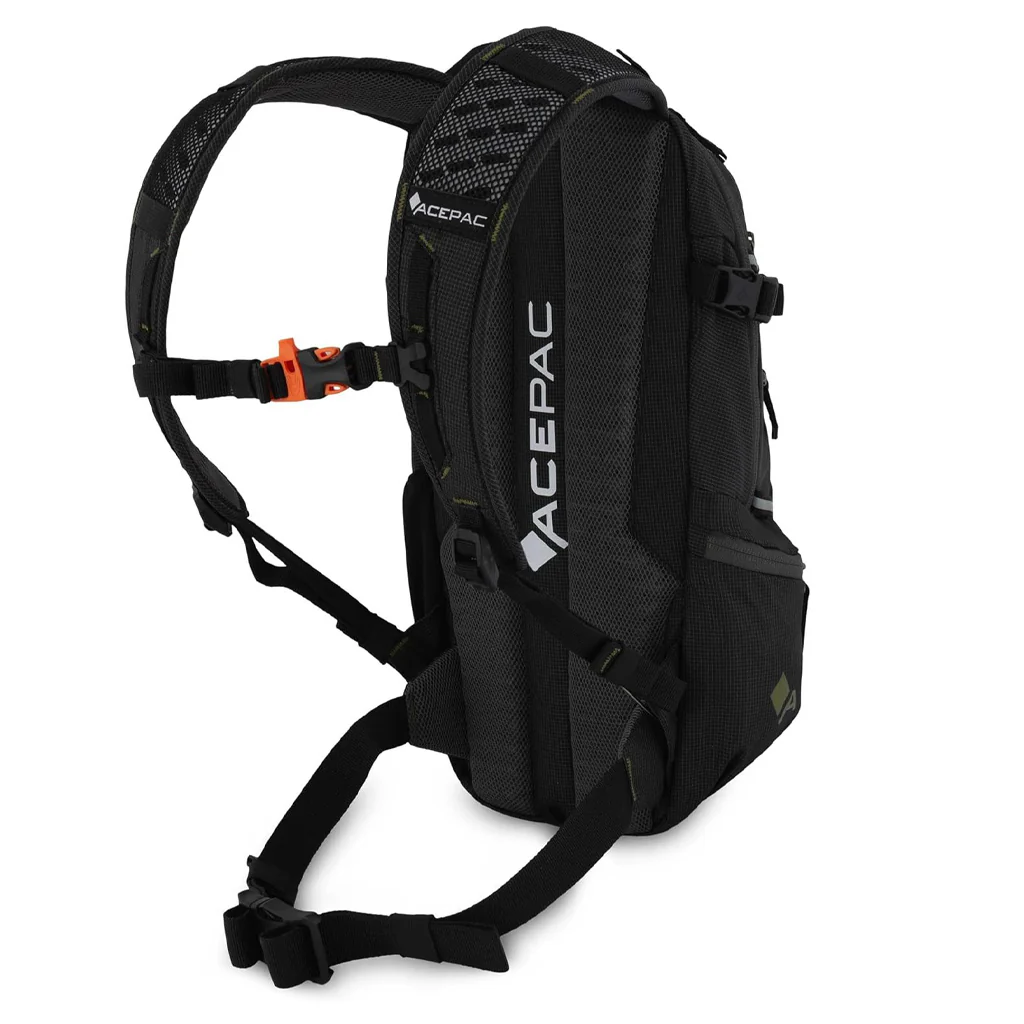 La superligera Flite 6 de Acepac es una mochila para ciclismo, running y senderismo con un volumen de 6 litros que ofrece espacio para almacenar comida, ropa adicional o una bolsa de hidratación. Impresiona por su perfecta comodidad de transporte y por su sección trasera ventilada.