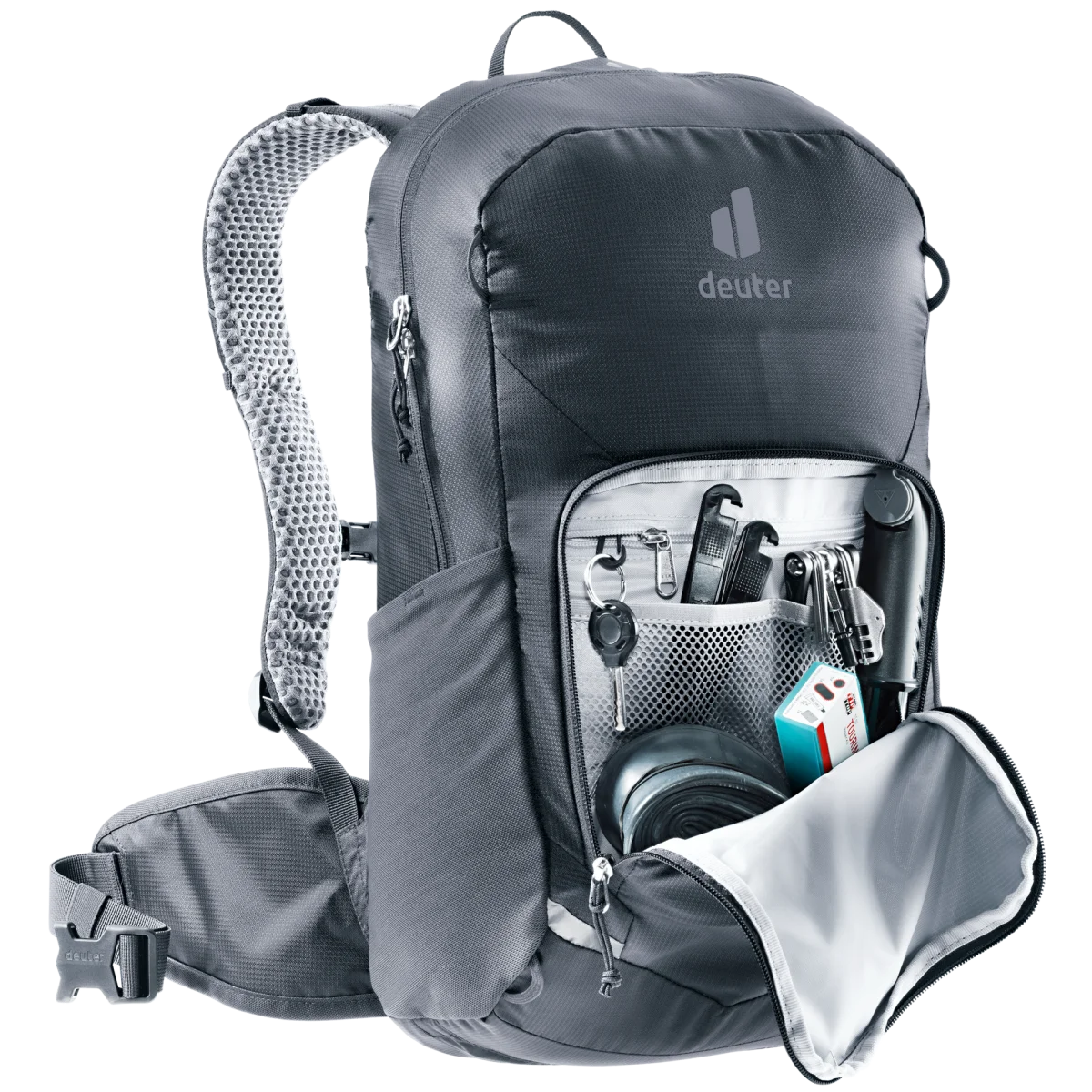 La mochila se puede utilizar tanto para montar en bicicleta como para hacer caminatas cortas. Ideal para excursiones en bicicleta o a pie a lugares remotos. La sujeción integrada para bastones y la red desmontable para casco hacen posible un uso versátil.