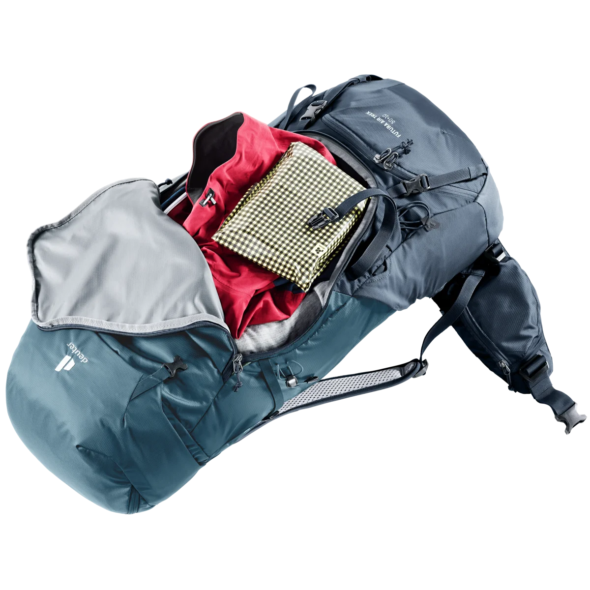 MATERIAL 210D PA RECYCLED SOSTENIBLE: el 50 % del hilo se utiliza de materias primas recicladas. El material principal de la serie Futura consiste en material certificado bluesign®. 210D PA RECYCLED PES de 600 D Tejida a partir de hilos de poliéster de 600 denieres y con un revestimiento de poliuretano, esta tela ligera y resistente a los desgarros es altamente versátil. Es la solución ideal si lo que se necesita es mantener el peso de la mochila lo más bajo posible de la espalda con estrés moderado. La versión “deuter Super Polytex BS” se fabrica en cumplimiento con los estrictos estándares de bluesign®. Sus características y factores de estrés son idénticos.