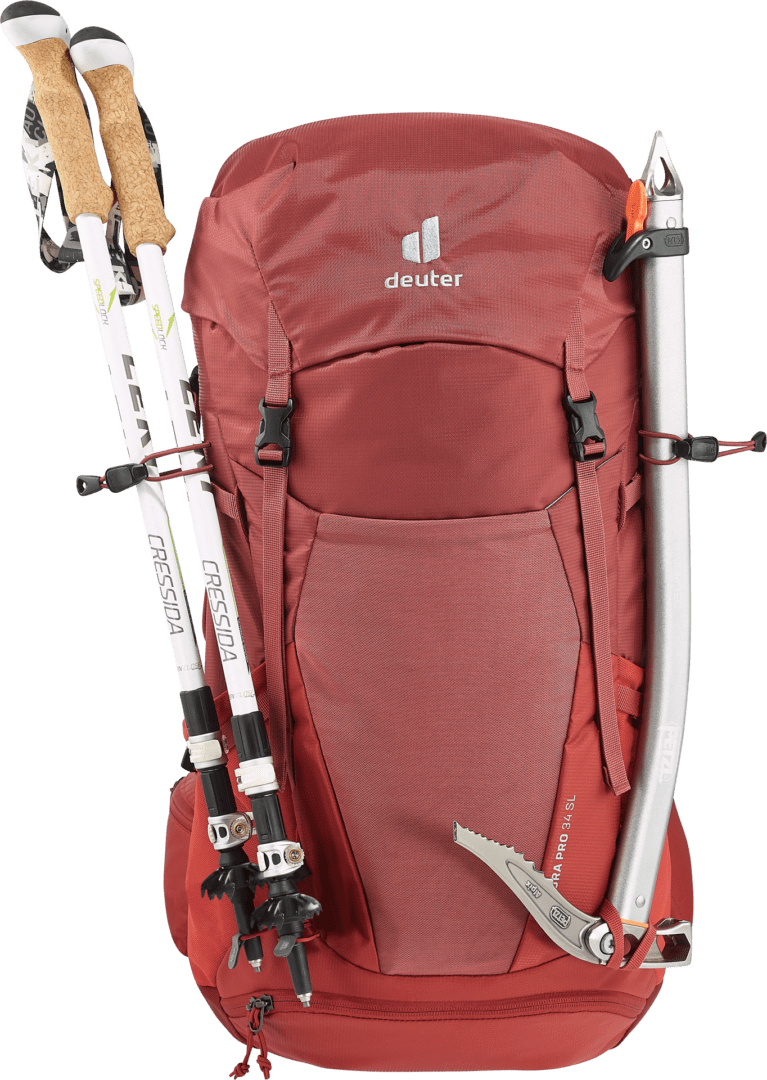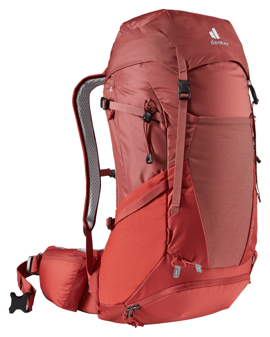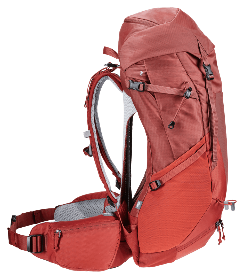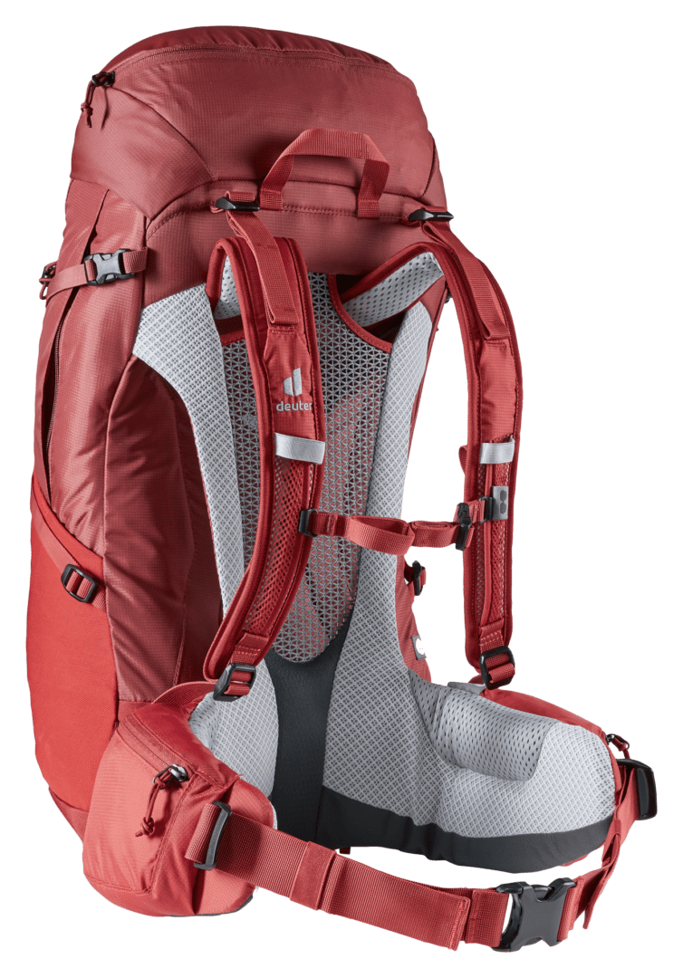 Este modelo también está disponible en la versión SL. El largo de espalda SL es específico para mujeres: en promedio, las mujeres tienen espaldas más cortas que los hombres. Por lo tanto, el sistema de transporte del modelo SL es algo más corto que el de las mochilas estándar de Deuter. Además, el sistema de transporte está especialmente adaptado a la anatomía femenina.