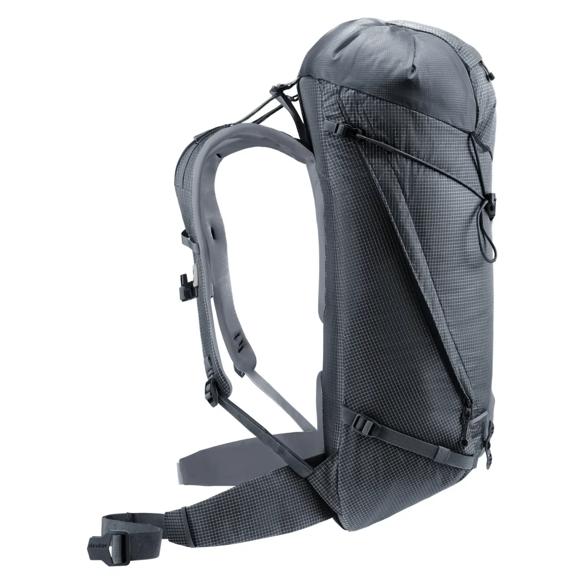 El estrecho cinturón, el portacascos de malla desmontable, las prácticas correas de sujeción, la sujeción para piolets en ambos lados y la correa para cuerda no solo establecen una excelente relación entre comodidad y peso, sino que también permiten llevar un arnés de escalada y ofrecen una flexibilidad extra para el uso de la mochila.