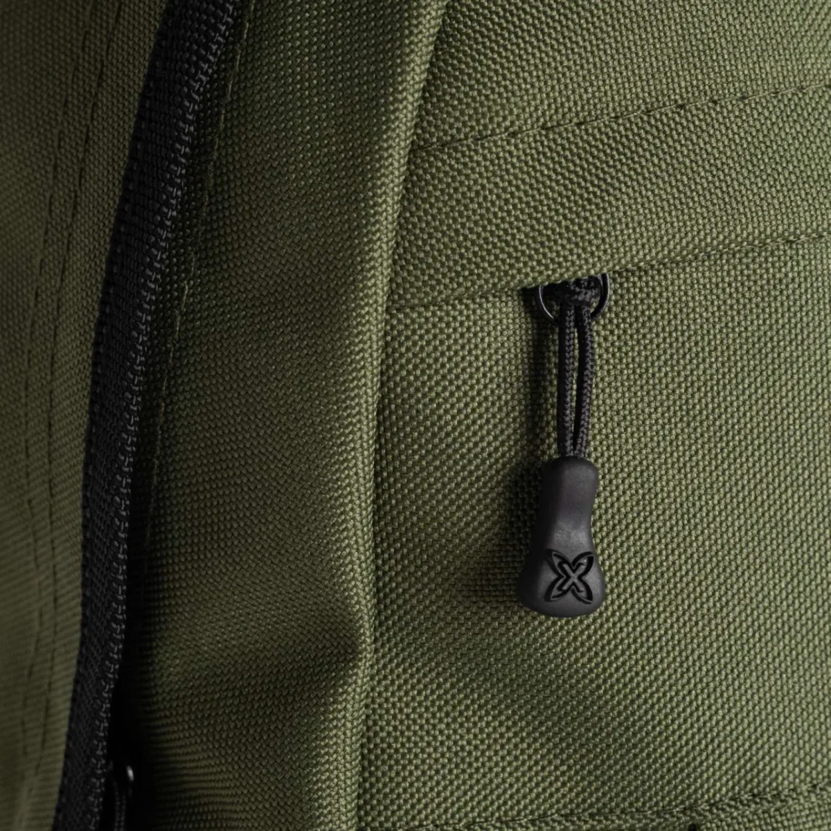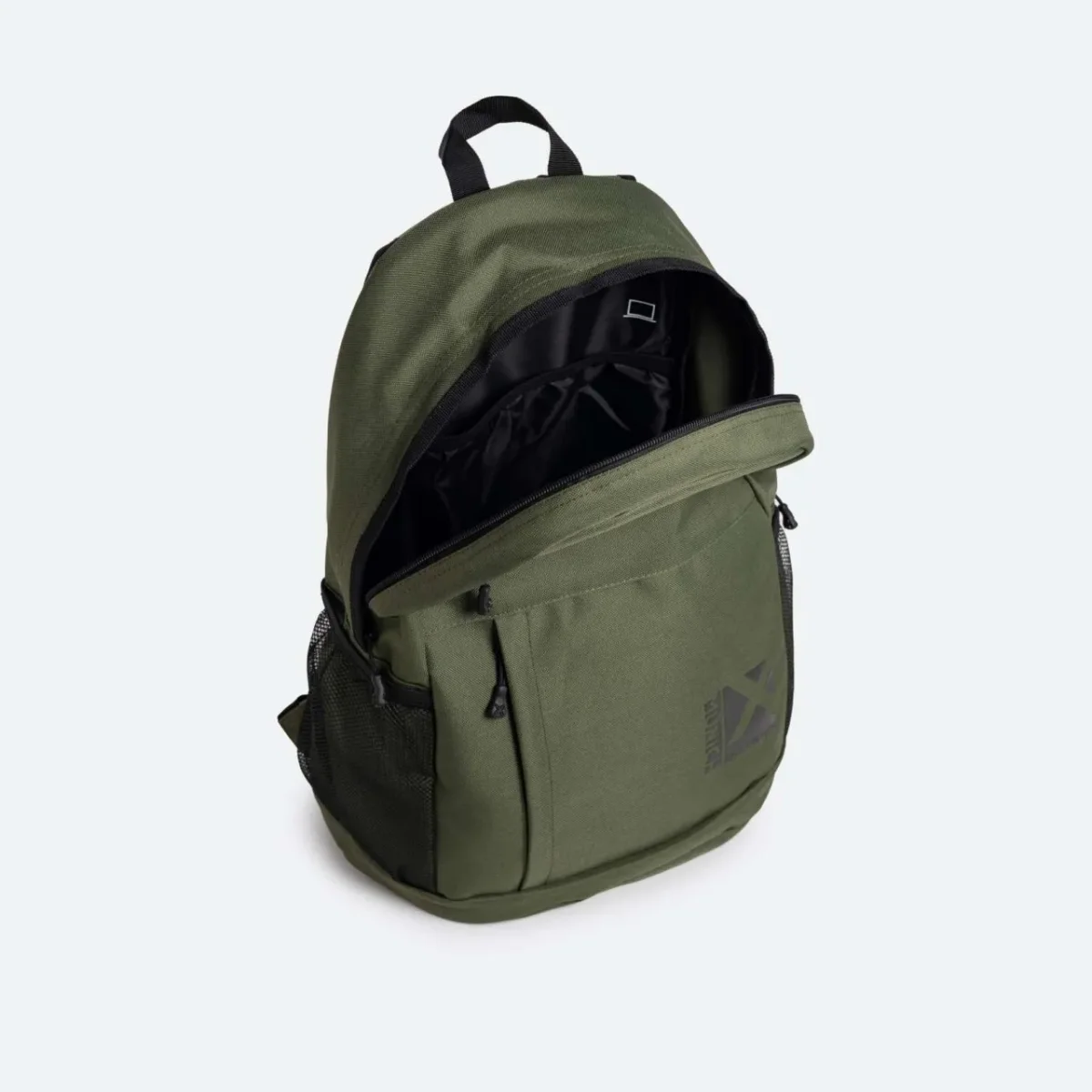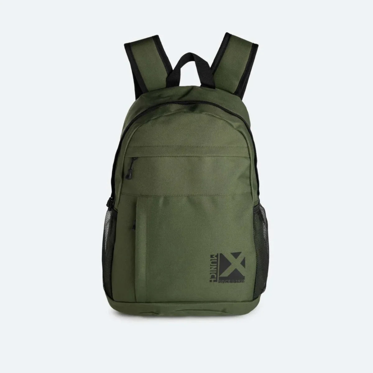 En la parte frontal posee otro bolsillo para objetos más pequeños y dos aplicaciones gráficas: el logotipo MUNICH y el logotipo X. En la parte posterior, podemos encontrar otra aplicación gráfica del logotipo MUNICH y unas asas ergonómicas con acabado de malla transpirable, las cuales son ajustables a los hombros de cada usuario. 42x30x18cm.