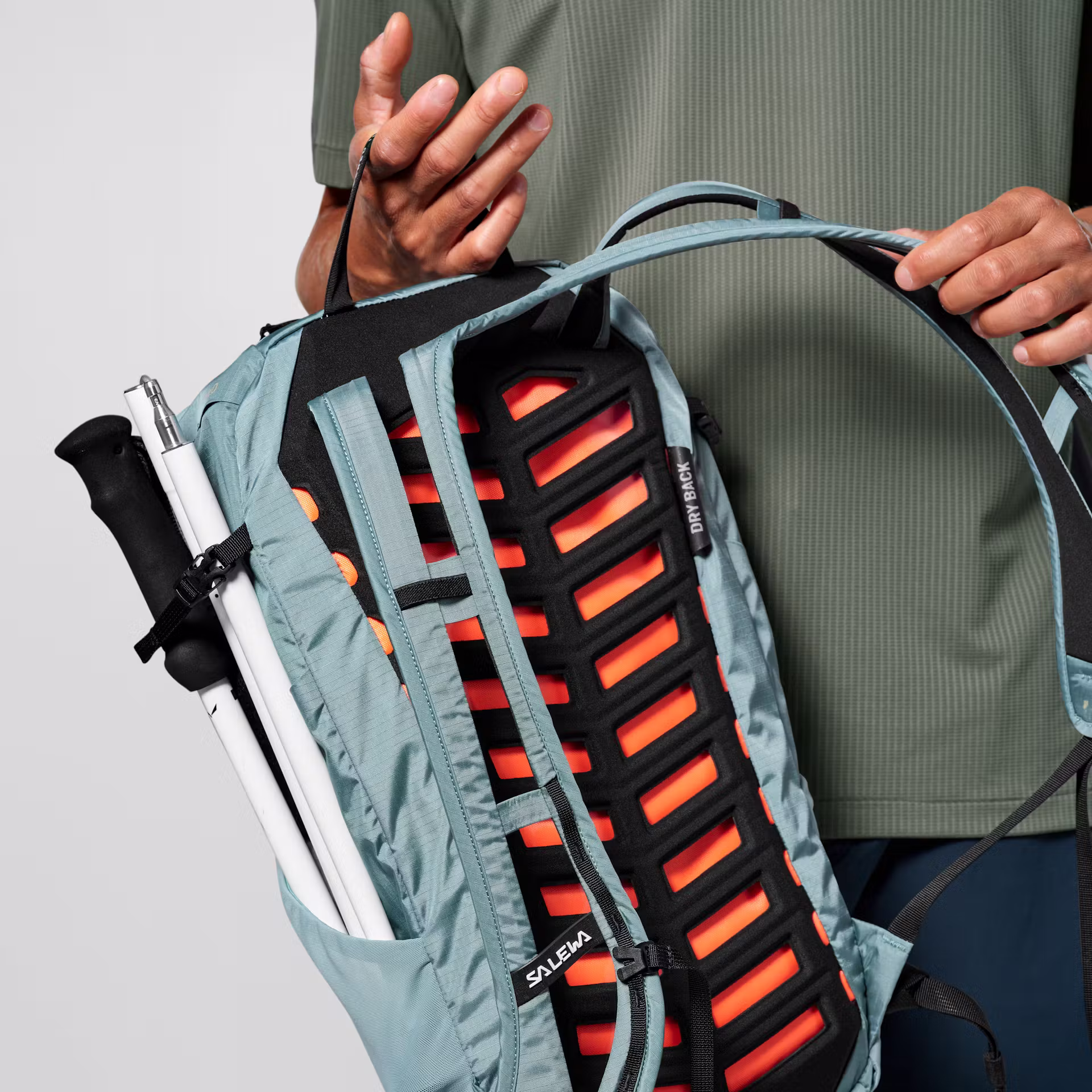 - Su diseño versátil incluye tirantes divididos, una cinta de bucles, una correa de cadera desmontable, bolsillos laterales de fácil acceso y un sistema para guardar los bastones de forma rápida y sencilla.