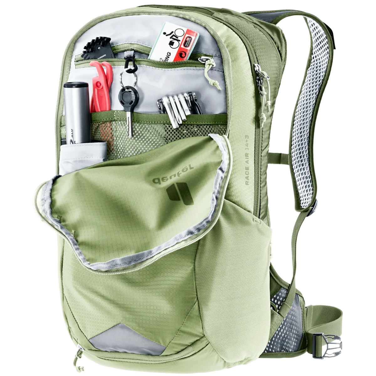 El sistema de espalda Aircomfort, de eficacia probada, ha sido diseñado específicamente para el ciclismo. Un panel de malla en la espalda dividido por la mitad significa que una parte aún menor de la mochila está en contacto directo con la espalda. También deja más espacio para una columna vertebral redondeada en posición de conducción. Las aletas de malla para las caderas, las correas de los hombros perforadas y el acolchado de la espalda garantizan el máximo flujo de aire, incluso en recorridos sudorosos.