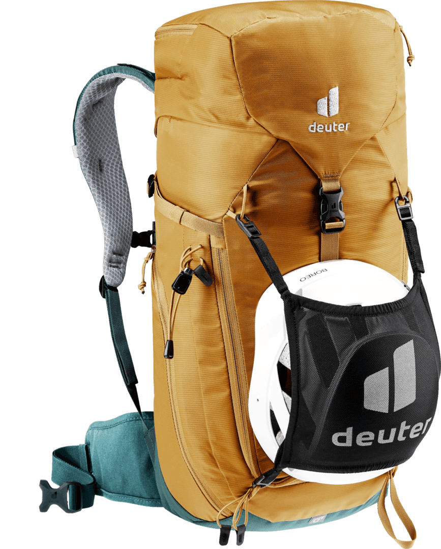 La reducida superficie de contacto y los grandes canales de ventilación del sistema dorsal Airstripes deuter, combinados con las aletas lumbares y los tirantes perforados, garantizan el máximo flujo de aire y una distribución uniforme del peso, para un ajuste cómodo y seguro en cualquier terreno. La tapa de formato plano permite un movimiento más fluido de la cabeza, incluso con el casco puesto. Los lazos de los tirantes mantienen los mosquetones de vía ferrata a mano. Y gracias a la gran abertura de la cremallera frontal y a los bolsillos laterales, el equipamiento y el material son siempre de fácil acceso.
