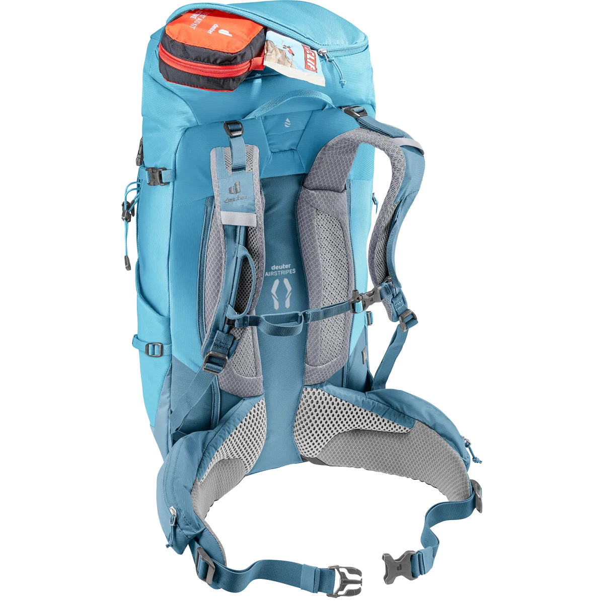 La reducida superficie de contacto del sistema dorsal deuter Airstripes, la malla Air Spacer de secado rápido, las aletas y los tirantes perforados, garantizan el máximo flujo de aire, una distribución uniforme del peso y un buen ajuste en rutas de vía ferrata (cuerda fija). La tapa plana permite un movimiento más fluido de la cabeza, incluso con casco. Los lazos de los tirantes mantienen los mosquetones de vía ferrata a mano. Y gracias a la gran abertura de la cremallera frontal y a los bolsillos laterales, siempre es fácil acceder al equipo.
