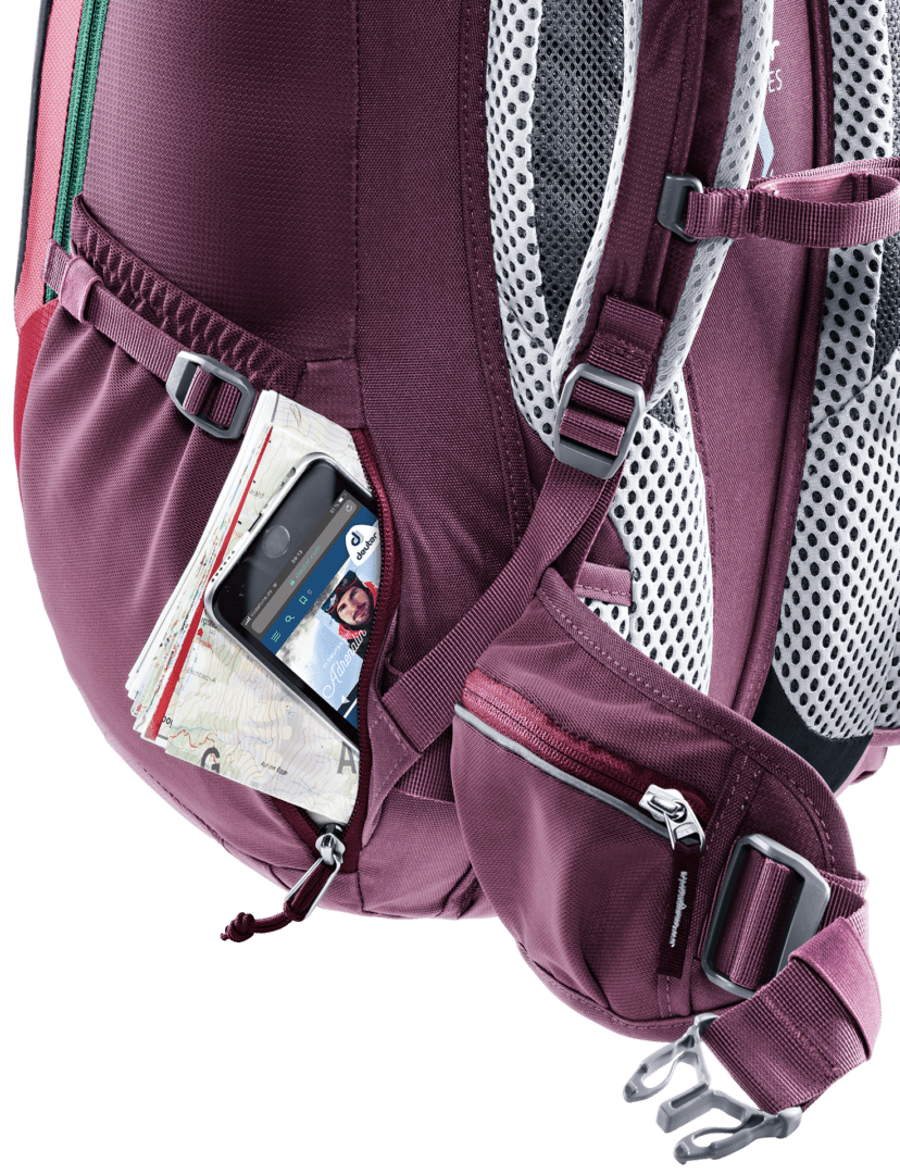 Este modelo también está disponible en la versión SL. El largo de espalda SL es específico para mujeres: en promedio, las mujeres tienen espaldas más cortas que los hombres. Por lo tanto, el sistema de transporte del modelo SL es algo más corto que el de las mochilas estándar de Deuter. Además, el sistema de transporte está especialmente adaptado a la anatomía femenina.