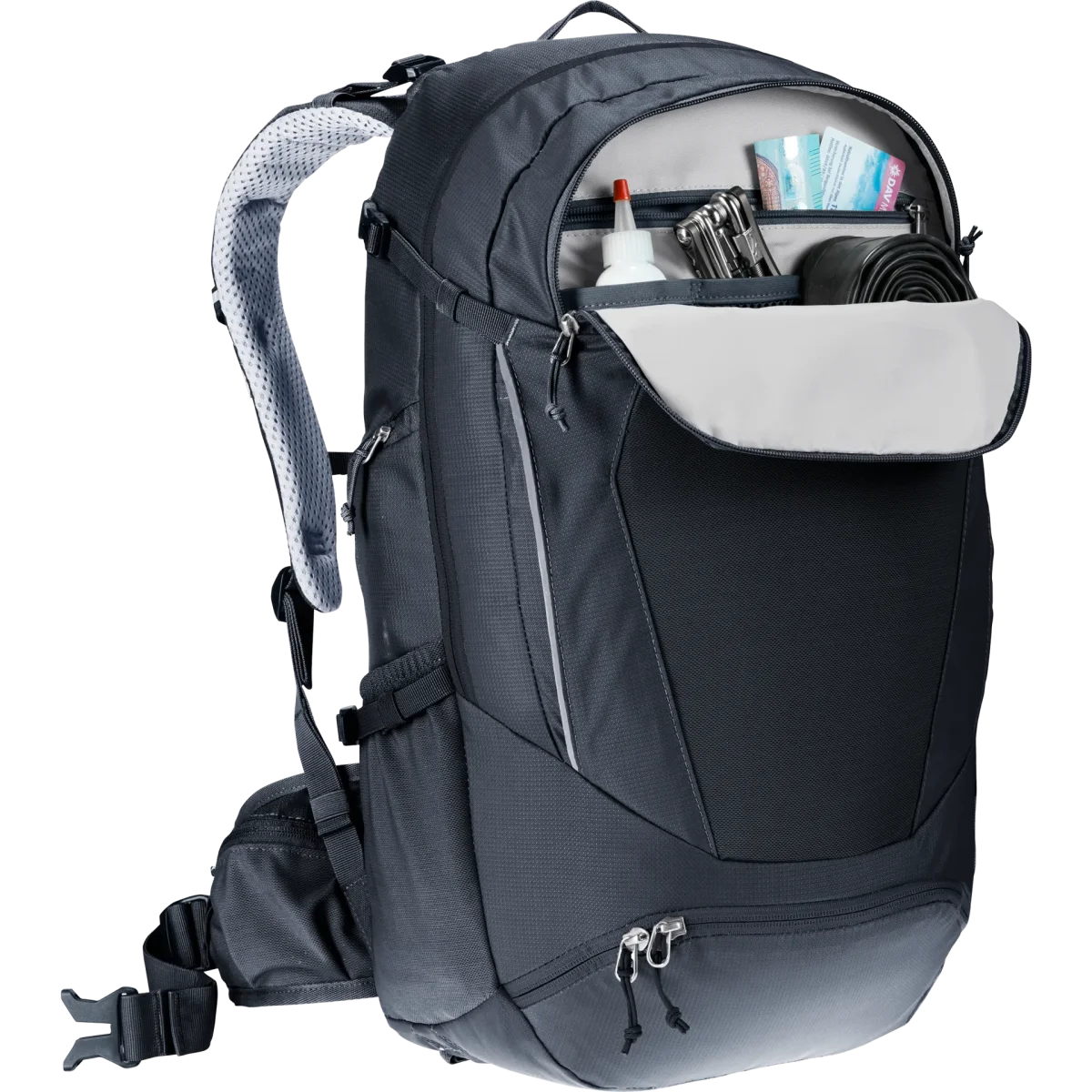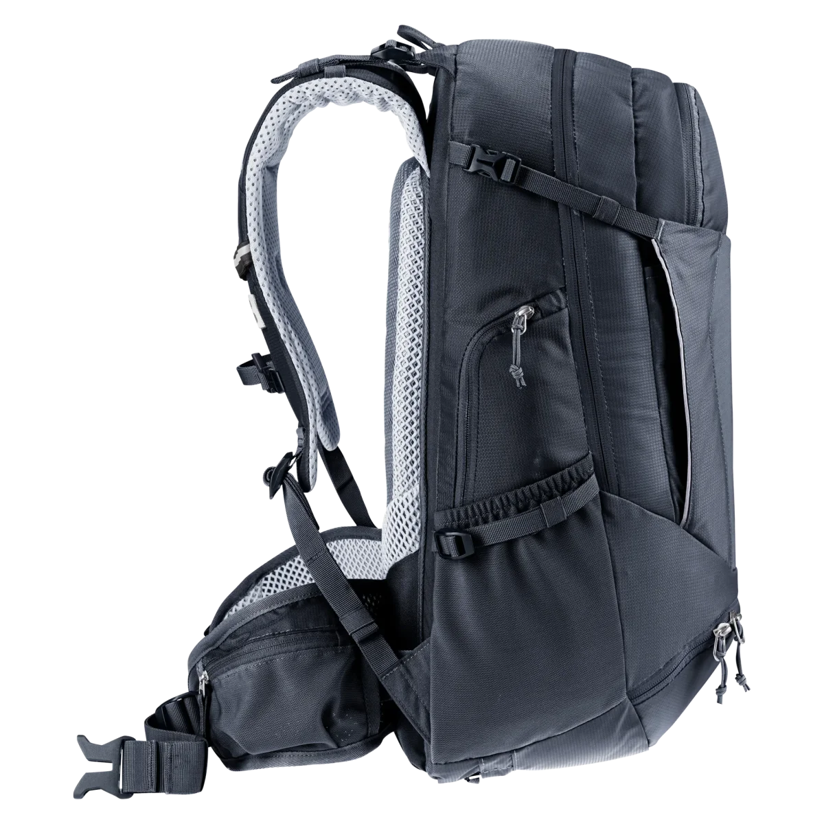 El sistema de espalda transpirable Airstripes garantiza un buen flujo de aire a través de la espalda y un ajuste perfecto para los senderos técnicos. La correa del esternón, que cuenta con una nueva hebilla de una sola mano, y las aletas de malla de la cadera mantienen la mochila en una posición perfecta, sin importar lo duro que sea el viaje.