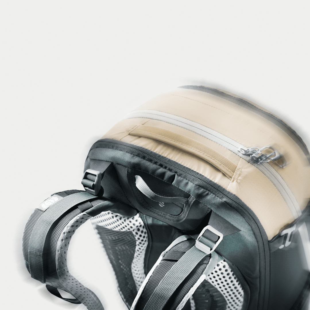 gracias al sistema de espalda Airstripes con superficie de contacto reducida para una máxima circulación de aire en la espalda. Los ajustadores de tracción hacia adelante comprimen la base de la carga y crean un ajuste ceñido y compacto al mismo tiempo.