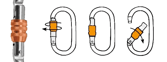 El cierre de rosca garantiza un bloqueo eficaz del mosquetón.
