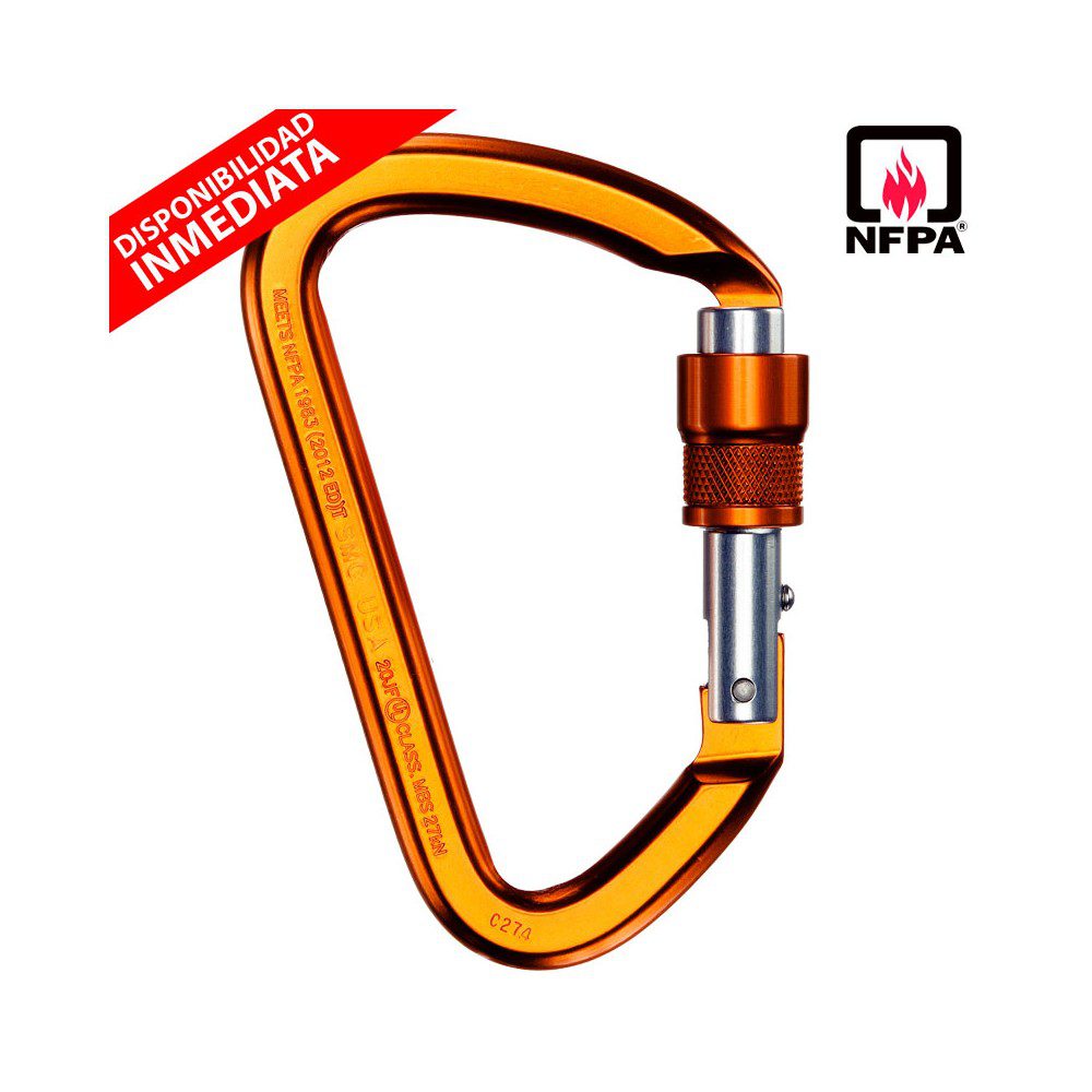 Mosquetón Aluminio Tipo D Rosca 28kN Kinetic NFPA Orange – SMC