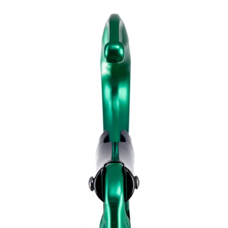 Nariz cónica: Su nariz puntiaguda en forma cónica facilita la inserción del mosquetón a plaquetas, pitones u otros elementos de conexión de forma precisa y fluida sin tropezar con ninguna curva del mosquetón. Al mismo tiempo, esta geometría, permite desmontar la vía con gran comodidad.