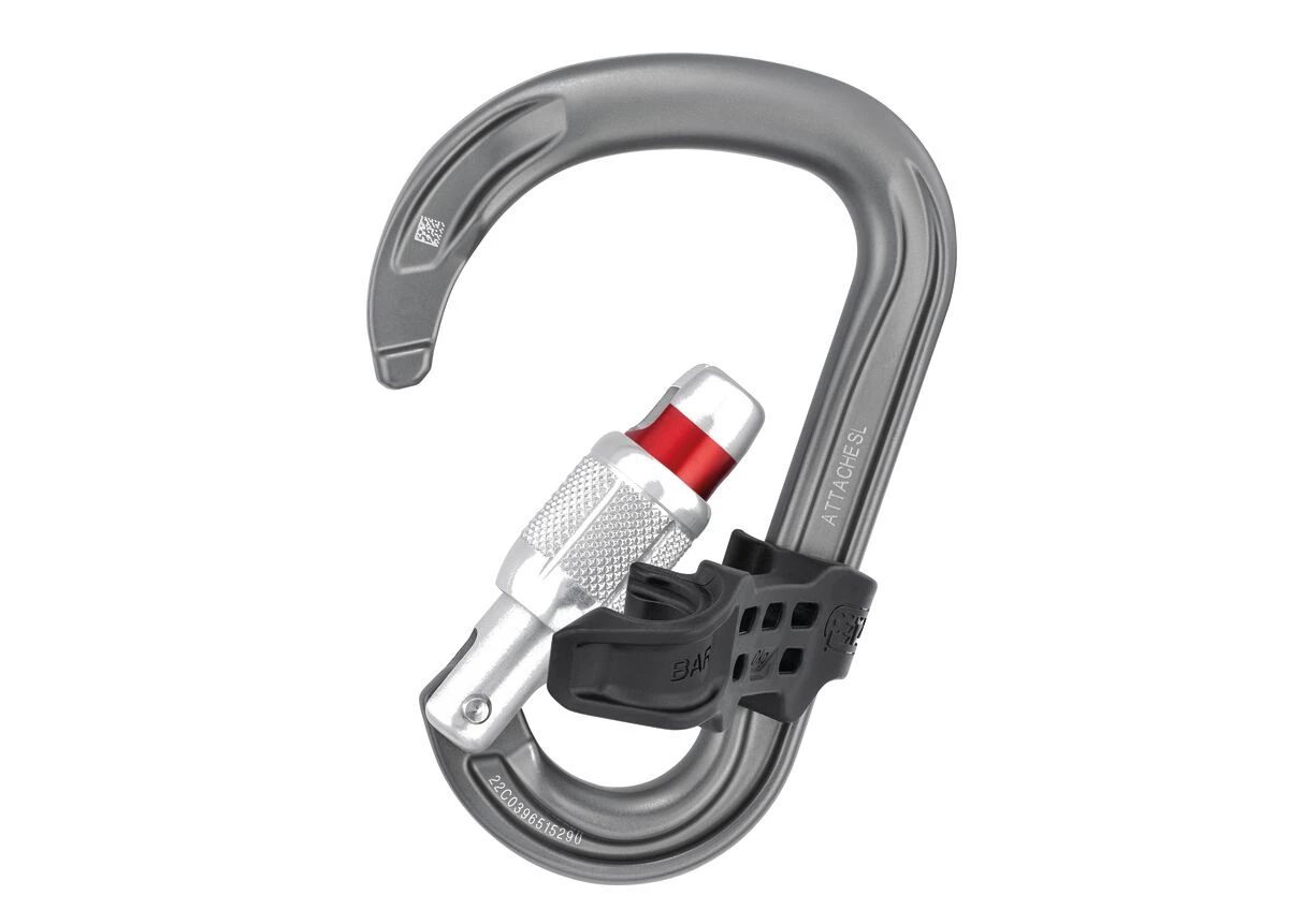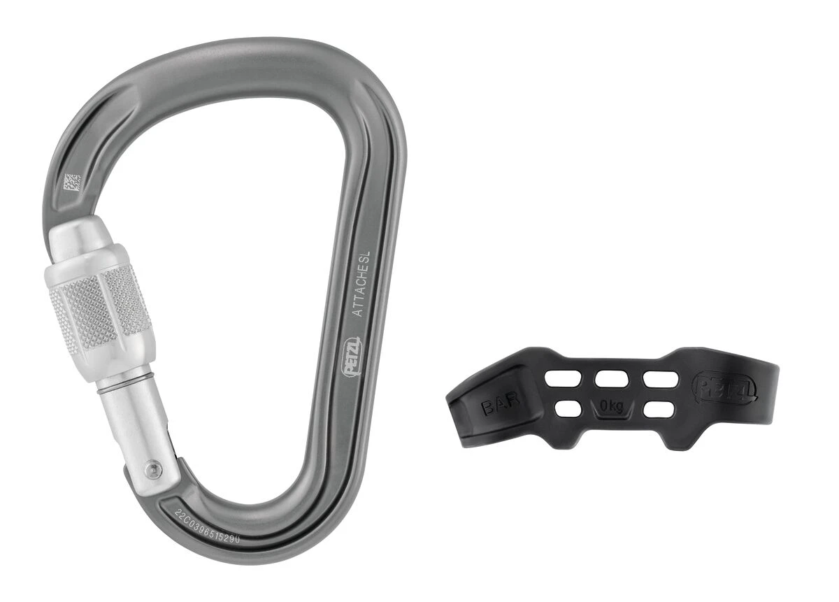 - ¡Se acabaron los mosquetones que rotan con el ATTACHE BAR! El mosquetón ATTACHE en forma de pera, utilizado con la barra extraíble BAR, ofrece una gran polivalencia de utilización.
