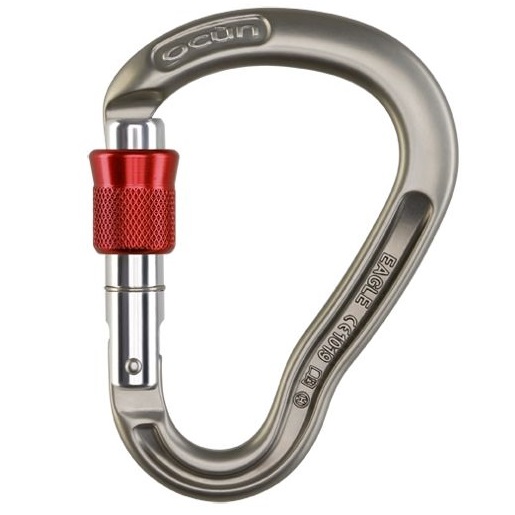 Eagle es un mosquetón HMS ligero adecuado para asegurar con un nudo UIAA o para ser utilizado con dispositivos de aseguramiento. El diseño ergonómico permite un fácil bloqueo con solo una mano y un agarre cómodo. Su forma fue diseñada con la intención de equilibrar el peso, la fuerza y el tamaño. El perfil de la parte superior permite una manipulación segura y segura con la cuerda.
