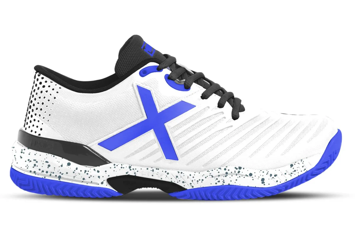 Con estas zapatillas Munich Padx 35 Padel cuenta con la mejor resistencia del mercado. Cuenta con una pieza de TPU. Con esto se consigue que tengan mucha más resistencia a la abrasión en las zonas más castigadas con el uso. El corte de las zapatillas se cierra por cordones y se han confeccionado con malla. Son resistentes y de tacto agradable. Se amoldan y ajustan perfectamente a los pies. Están reforzadas en las zonas que más roce sufren. De este modo puedes seguir jugando con toda la intensidad garantizando que las zapatillas resisten las abrasiones, roces e impactos. Durarán como nuevas por más tiempo a pesar de uso en entrenamientos y partidos. La suela en la parte media se ha diseñado para ser más flexible. La suela es clay, con dibujo de espiga. En la parte delantera de la suela tiene dos puntos de rotación para mejorar los giros.