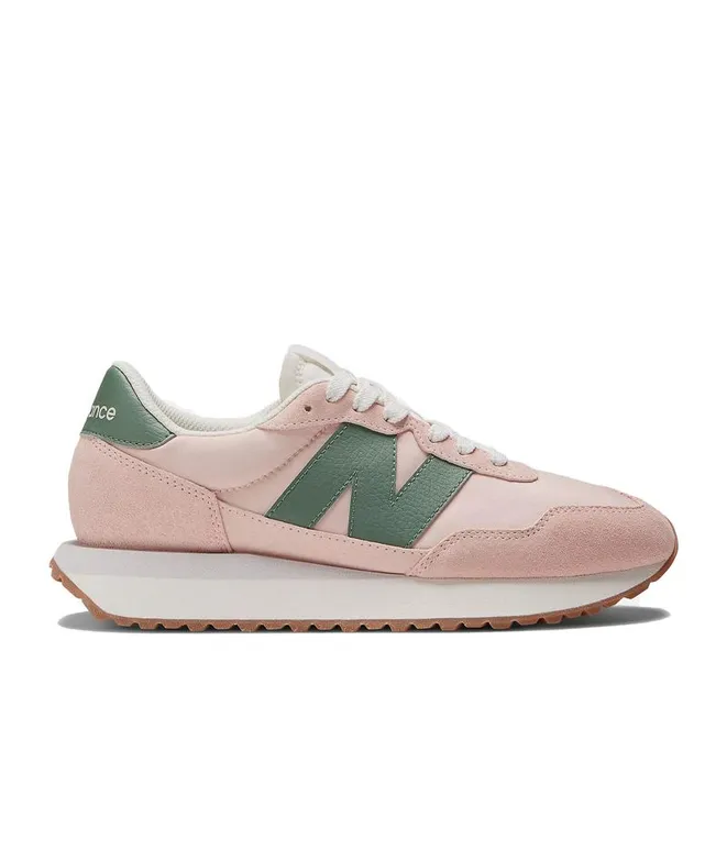 Las zapatillas de running de los 70 son sencillas, pero solo en apariencia. Aunque carentes de la tecnología y el diseño agresivo de las zapatillas modernas, las características innovadoras de esa década son las precursoras de las líneas actuales. La 237 es una reinterpretación contemporánea de las zapatillas de running clásicas de los 70, y fusiona la inspiración de diseño clásico con una silueta en apariencia sencilla, aunque excepcionalmente versátil y actual. La entresuela de EVA, la suela en forma de espiga y el empeine aerodinámico constituyen el lienzo donde plasmar los elementos modernos, como la marca «N» sobredimensionada, la entresuela extendida y las protecciones y el moteado inspirados en la piel de cocodrilo. El aspecto familiar de la 237 junto sus toques extravagantes constituyen la forma más sencilla de marcar tendencia.