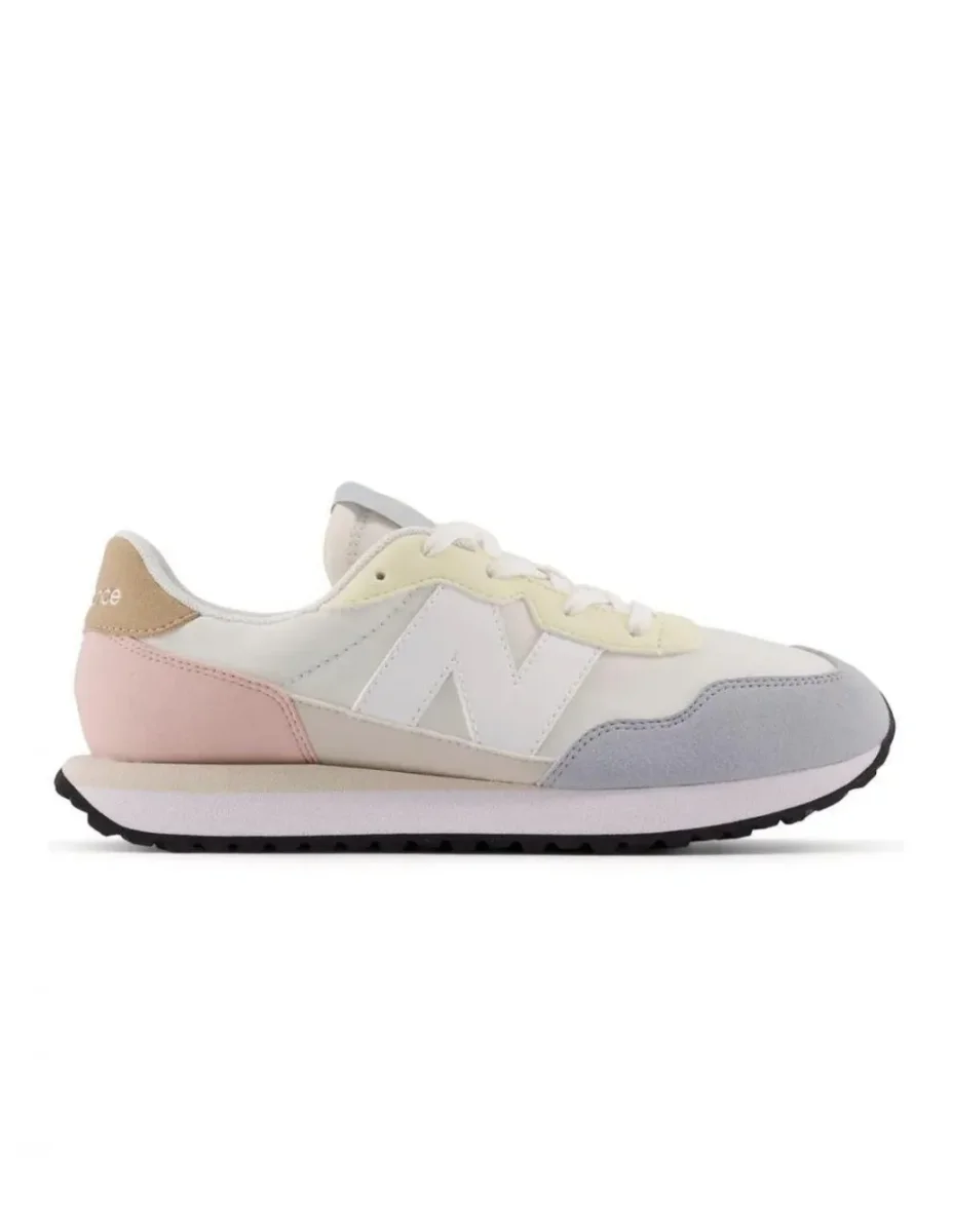 La parte interior es muy transpirable. La entre suela de las zapatillas de New Balance 237 colores pastel está equipada con espuma EVA, que amortigua la pisada para proporcionar una gran comodidad. Horma amplia. La suela de las deportivas de New Balance 237 v1 está compuesta de caucho muy duradero.