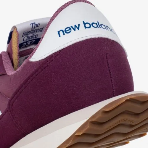 Las zapatillas inspiradas en el running de los 70 son sencillas, pero solo en apariencia. Aunque carentes de la tecnología y el diseño agresivo de las zapatillas modernas, las características innovadoras de esa década son las precursoras de las líneas actuales. La 237 es una reinterpretación contemporánea de las zapatillas de running clásicas de los 70, y fusiona la inspiración de diseño clásico con una silueta en apariencia sencilla, aunque excepcionalmente versátil y actual. La entresuela de EVA, la suela en forma de espiga y el empeine aerodinámico constituyen el lienzo donde plasmar los elementos modernos, como la marca «N» sobredimensionada, la entresuela extendida y las protecciones y el moteado inspirados en la piel de cocodrilo. El aspecto familiar de la 237 junto sus toques extravagantes constituyen la forma más sencilla de marcar tendencia.
