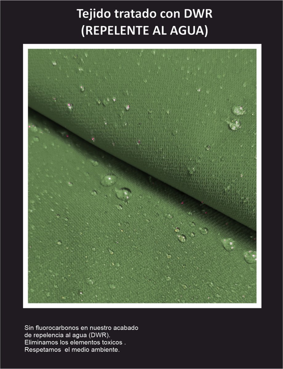 Prestaciones: Tejido tratado con DWR repelente al agua, corta el viento, transpirable, cremalleras waterproof y tejido elástico.