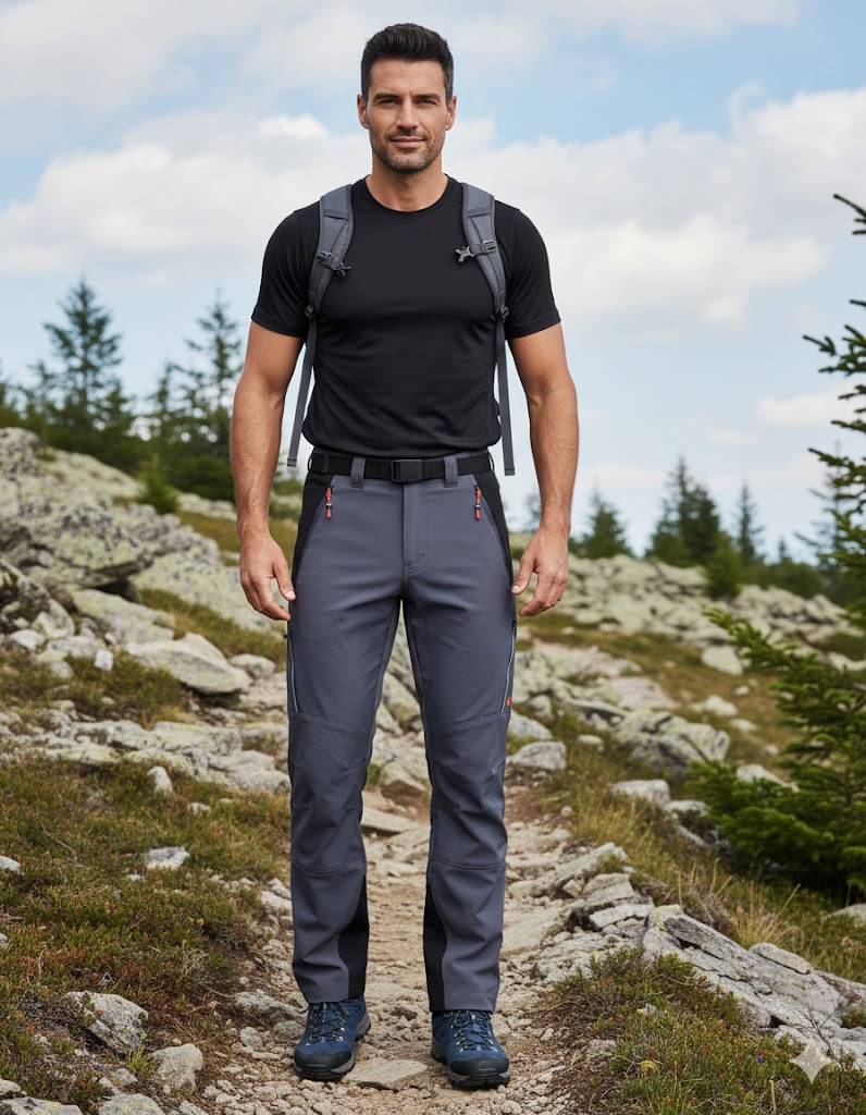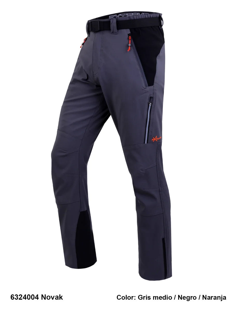 Descripción: Cintura semi-elástica con cierre de doble botón corchete y cinturón elástico ajustable, tres bolsillos con cremalleras, pinzas y tejidos especial en los bajos, cremallera y goma ajustable en los bajos, logo bordado.