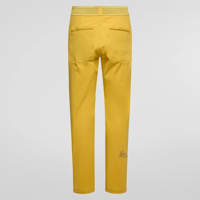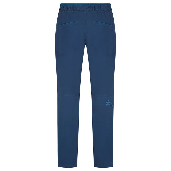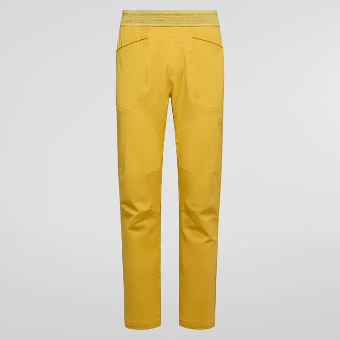 Pantalón de escalada fabricado, elástico y con rodillas preformadas.