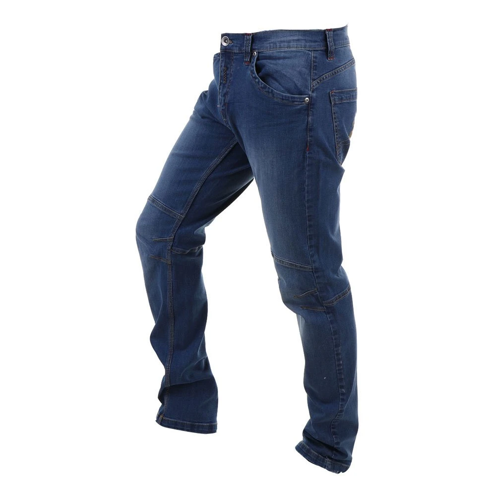 Pantalón de escalada vaquero con tejido elástico, muy cómodo y a la vez resistente.
