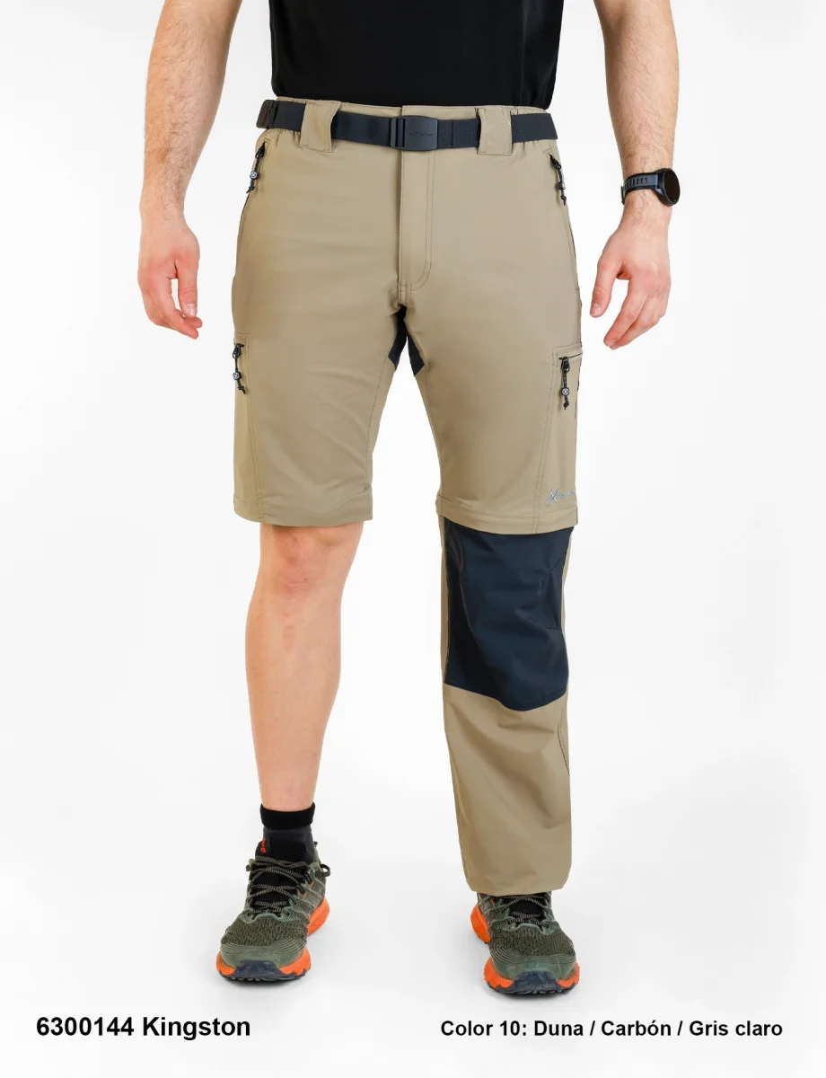 Descripción: pantalon desmontable ,Cintura semi-elástica con cierre de botón corchete, cinturón elástico ajustable, seis bolsillos insertados, pinzas en las rodillas, goma ajustable en los bajos, logo bordado.