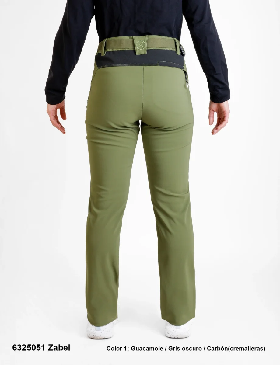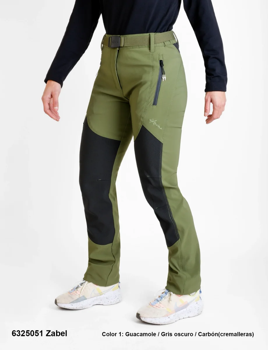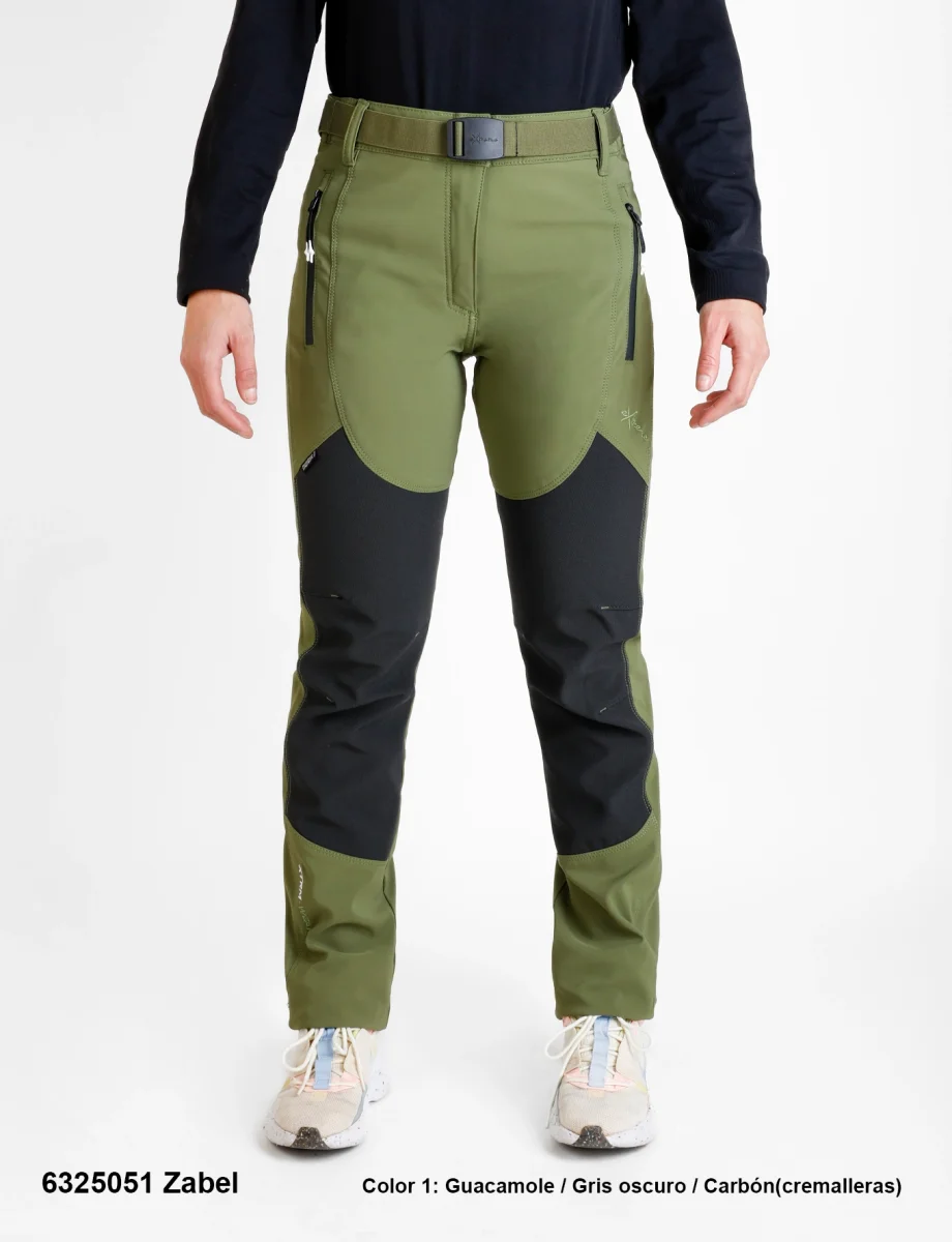 Descripción: Cintura semi-elástica con cierre de botón a presión y cinturón elástico, tres bolsillos con cremalleras invertidas, cambio de tejido antiespinoso en las rodillas y lumbares, pinzas en zona de rodillas, ceñidor ajustable en los bajos, logos bordados.