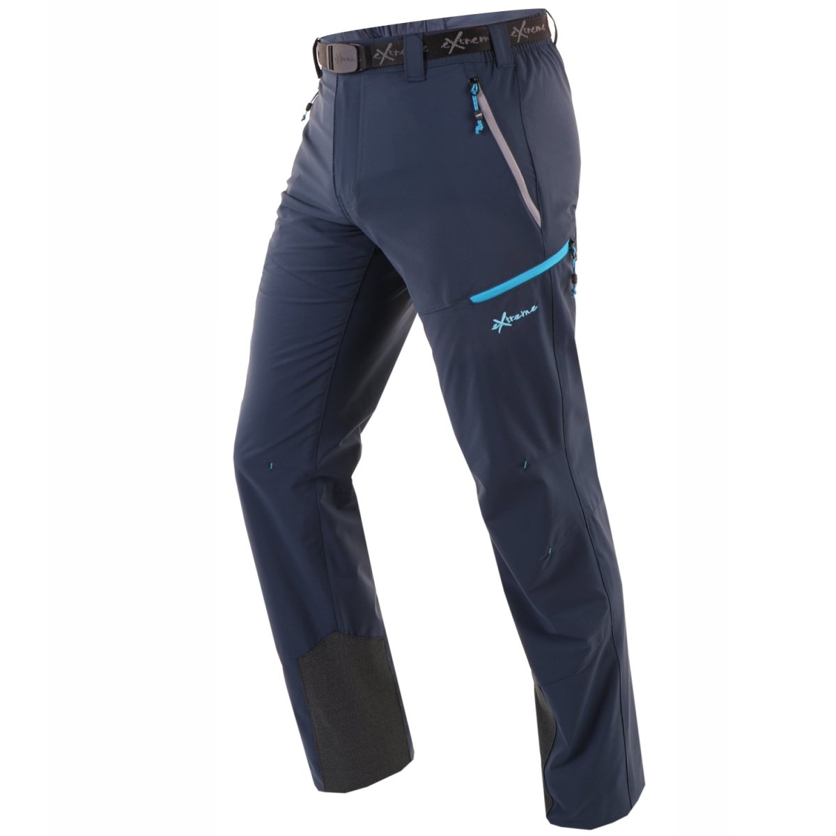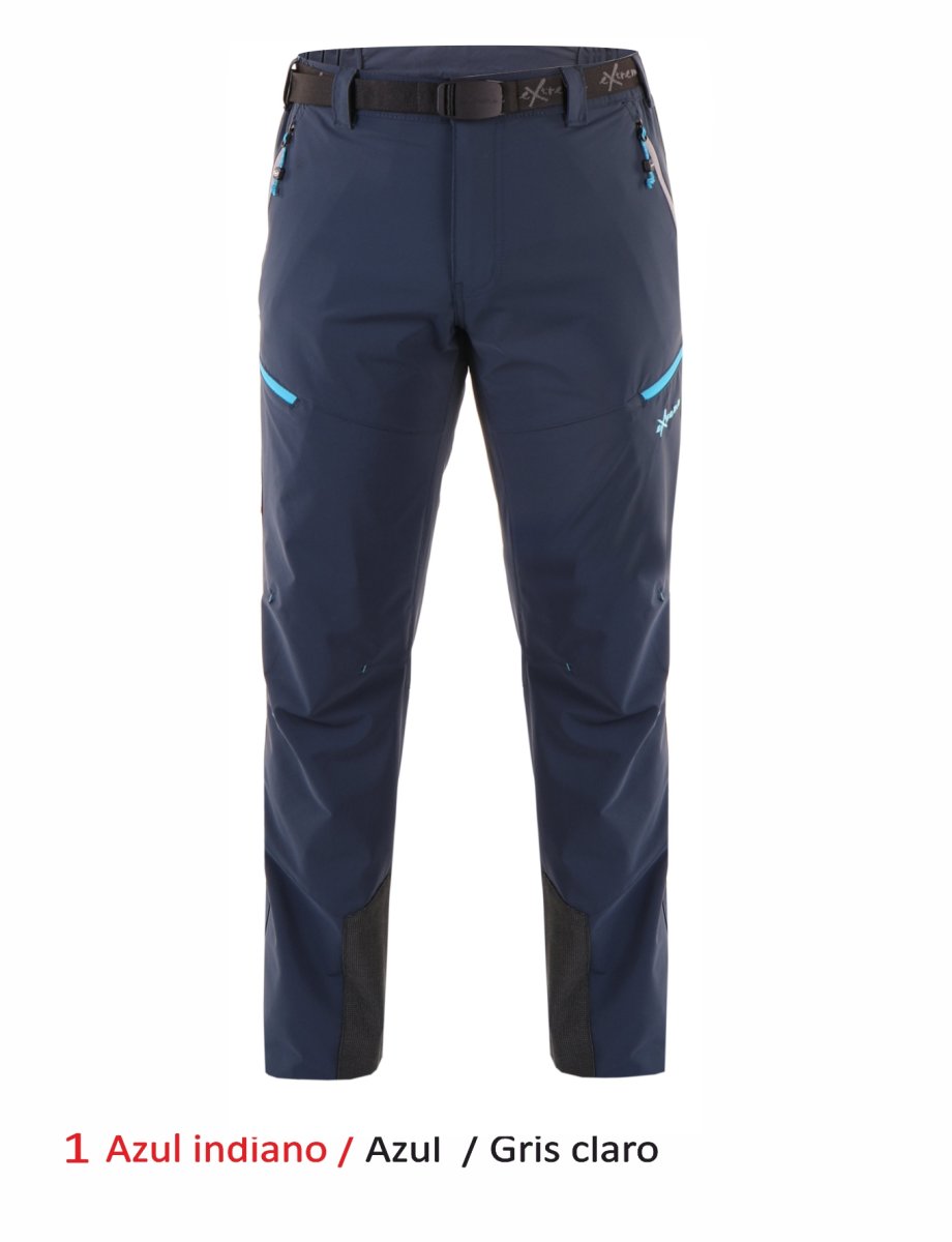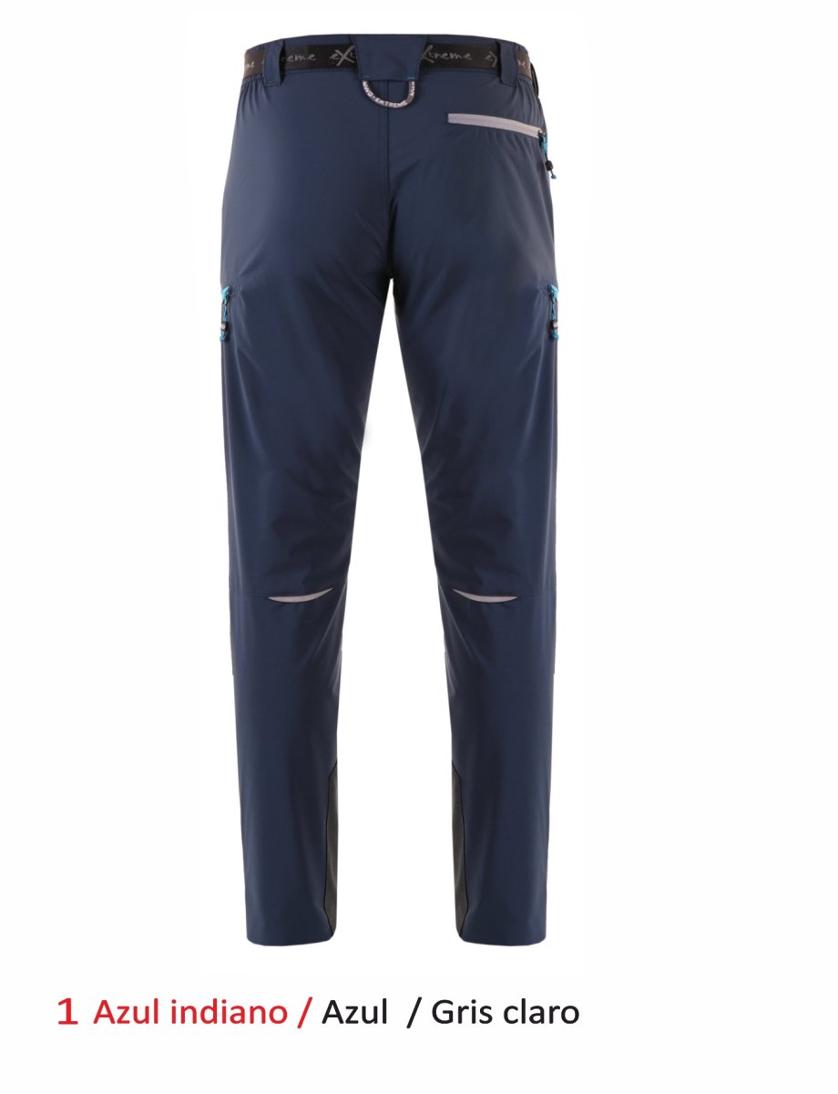 Descripción: Cintura semi elástica, cierre de botón corchete, cinturón ajustable, bolsillos delanteros, laterales y trasero con cremalleras invertidas a contraste, pinzas en las rodillas, banda reflectante en la parte trasera, protector con tejido especial en los bajos, logos bordados.