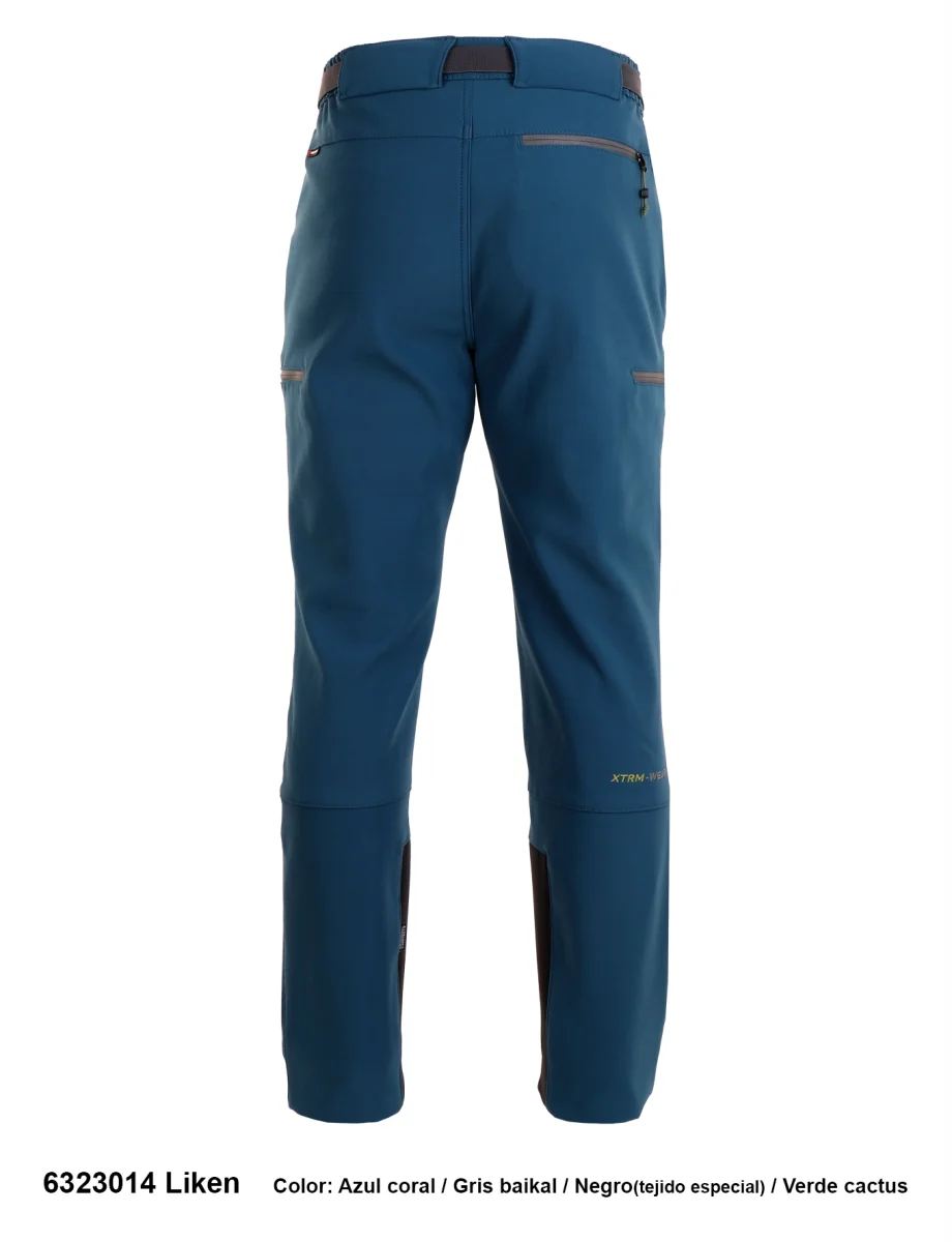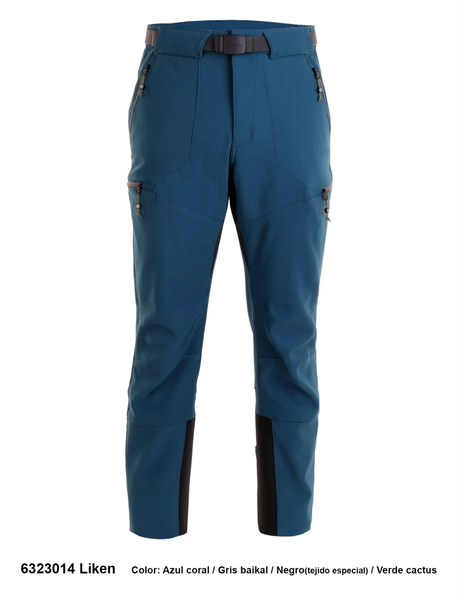 Descripción: Cintura semi-elástica con cierra de botón corchete y cinturón elástico ajustable, cinco bolsillos con cremalleras invertidas a contraste, refuerzo con cordura en la entrepierna y los bajos, pinzas en las rodillas, cremallera y cierre ajustable con botón a presión en los bajos, logo bordado.