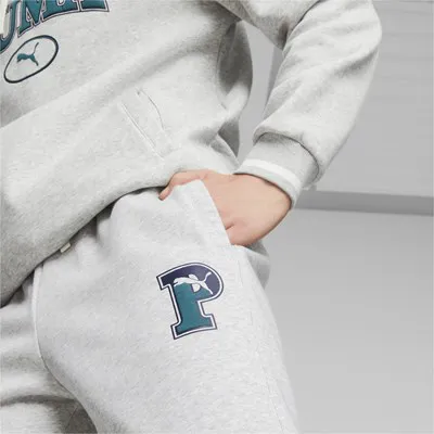 En el sofá, el gimnasio o en cualquier otro lugar: estos pantalones de chándal PUMA SQUAD le dan un toque universitario a cualquier look. Lo más destacado es el gráfico PUMA estampado en la pernera.