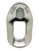 Placa de espeleología que mantiene el mosquetón en un eje perpendicular a la pared separando la cuerda de la roca.